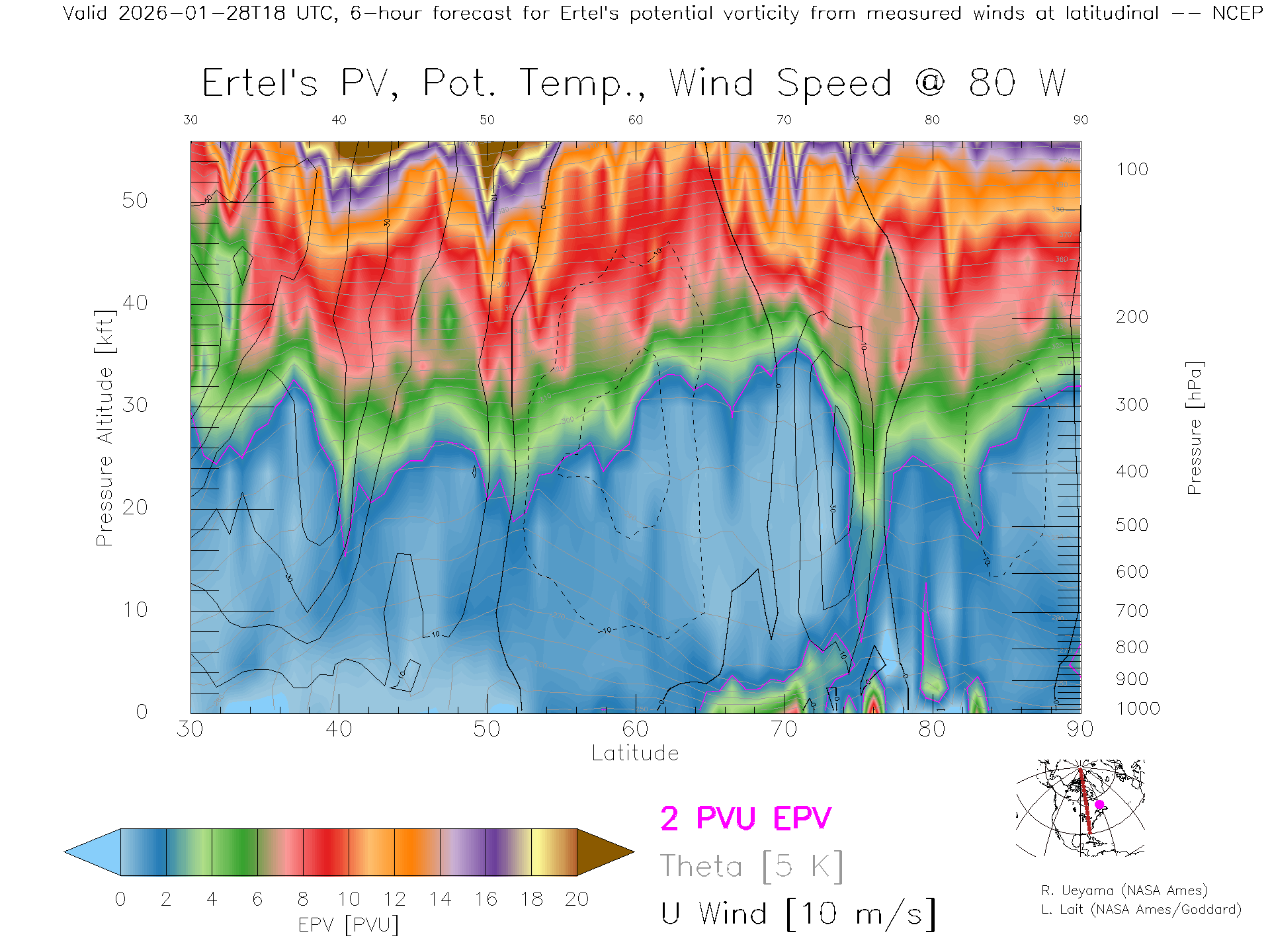 NCEP GFS Forecast PV X-Section (80 W)