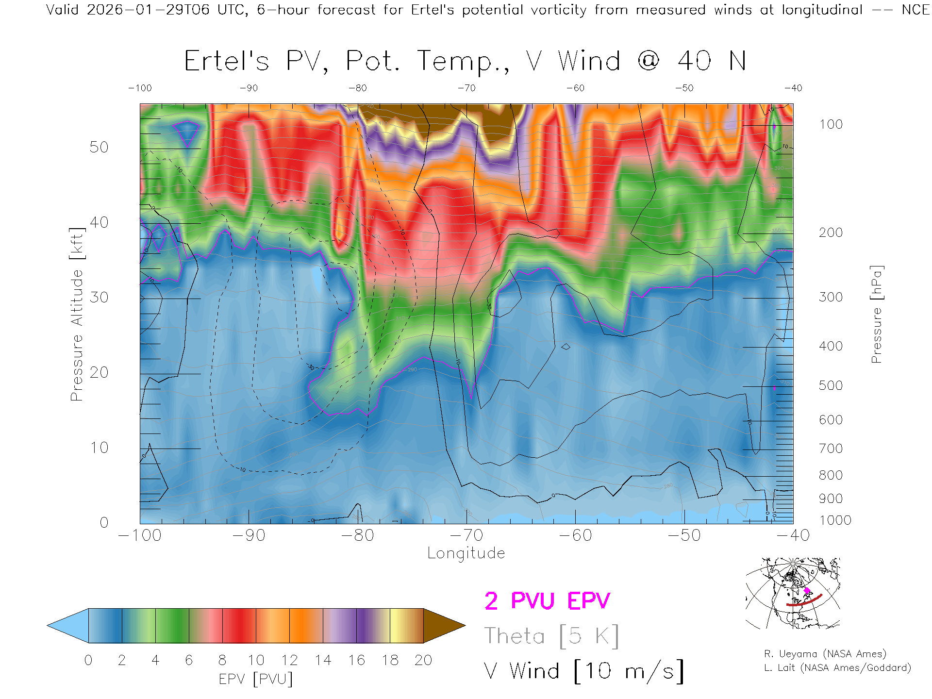 NCEP GFS Forecast PV X-Section (40 N)
