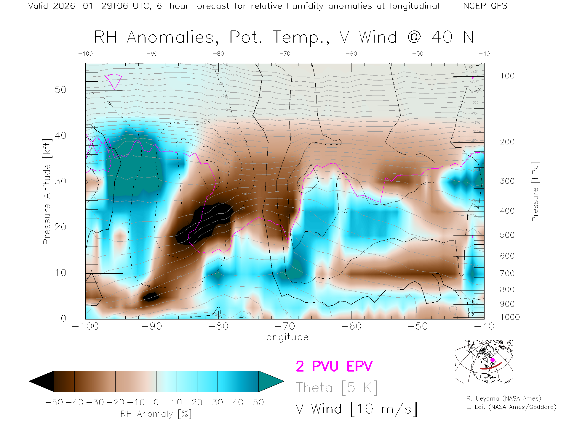 NCEP GFS Forecast Rel. Hum. X-Section (40 N)