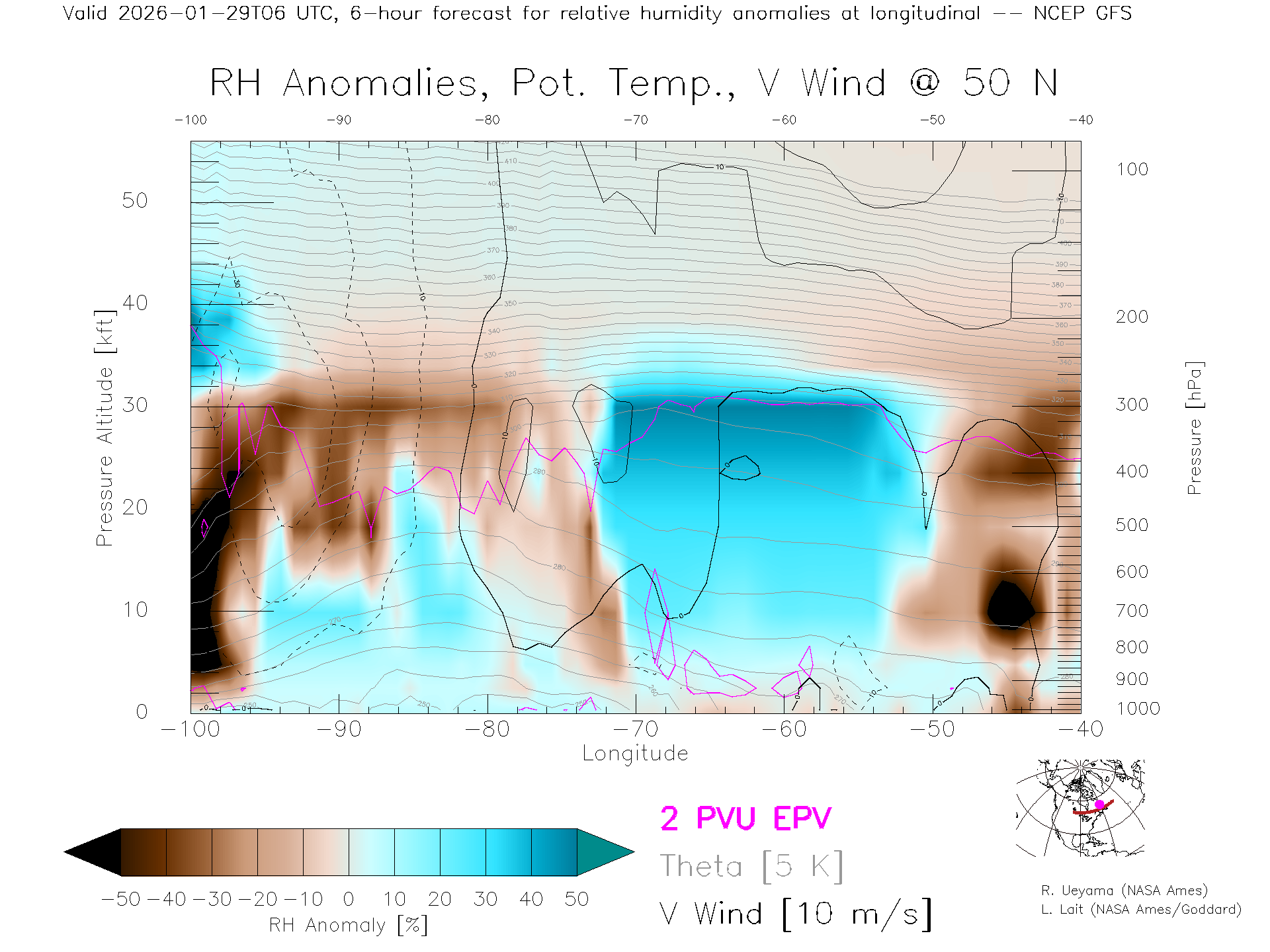 NCEP GFS Forecast Rel. Hum. X-Section (50 N)