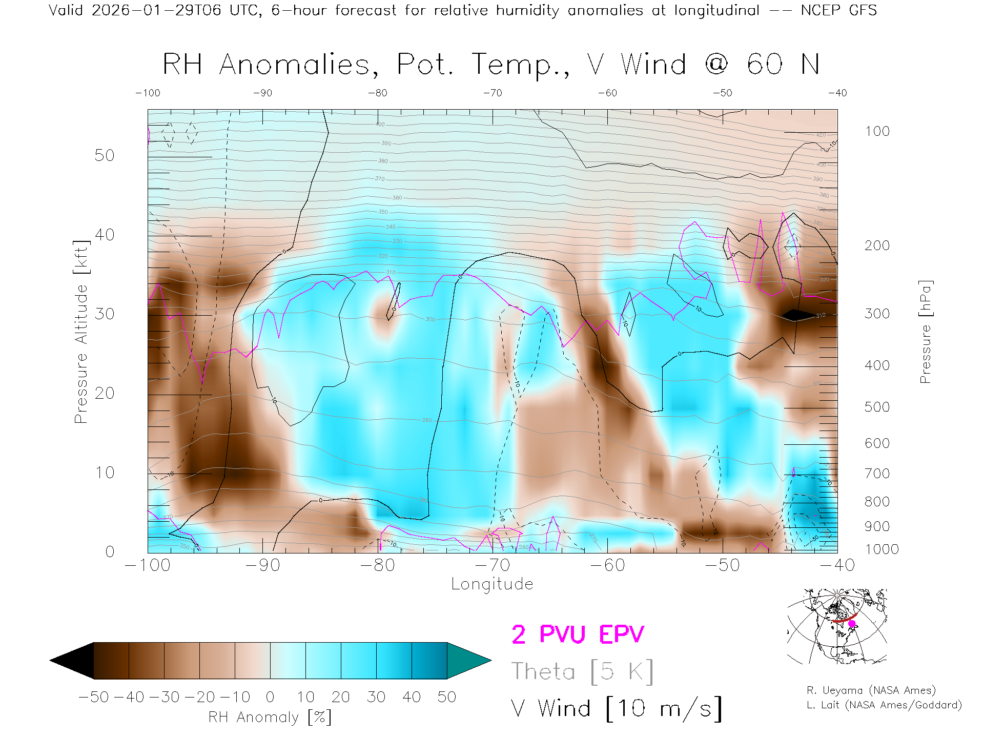 NCEP GFS Forecast Rel. Hum. X-Section (60 N)