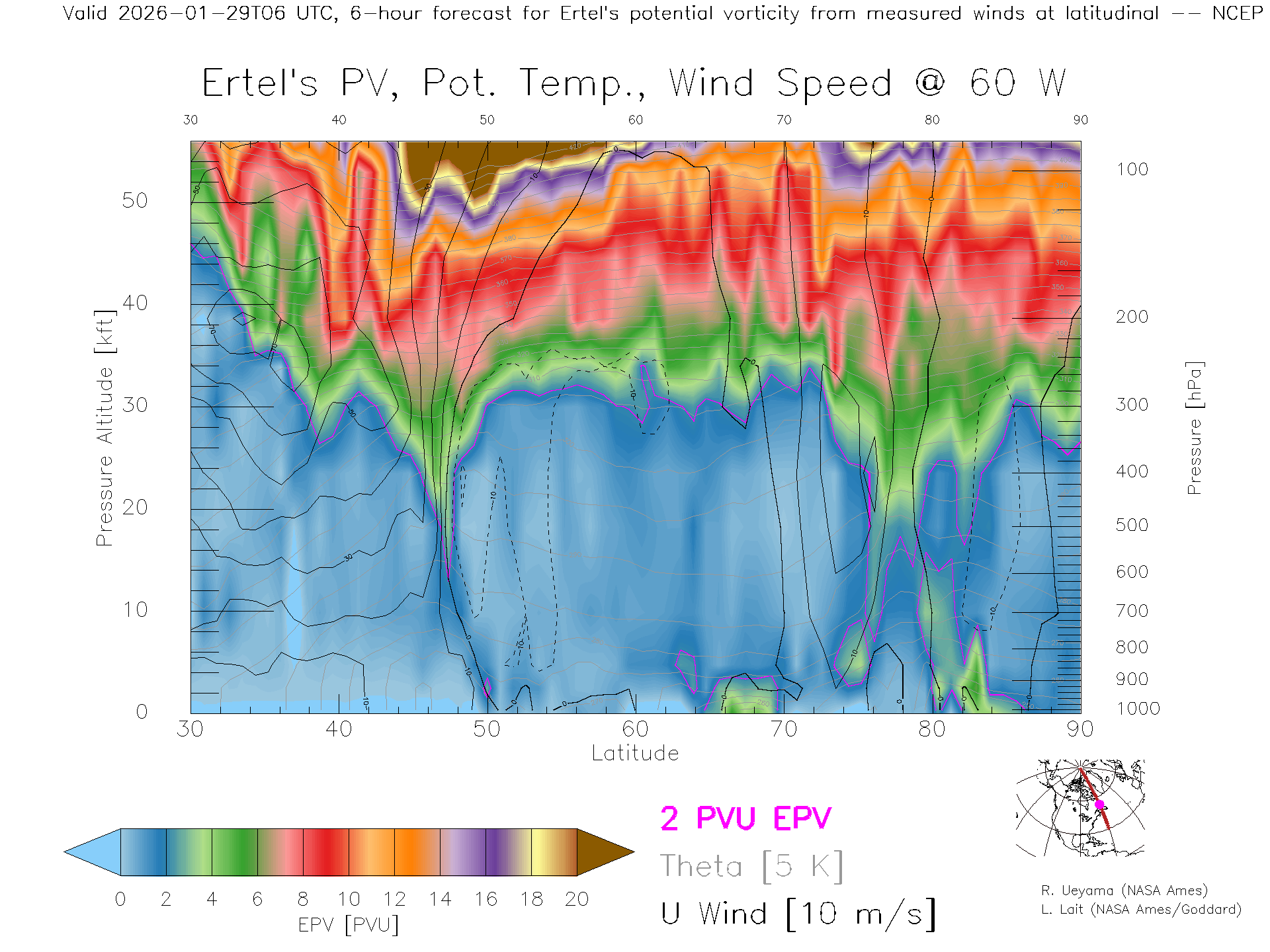 NCEP GFS Forecast PV X-Section (60 W)