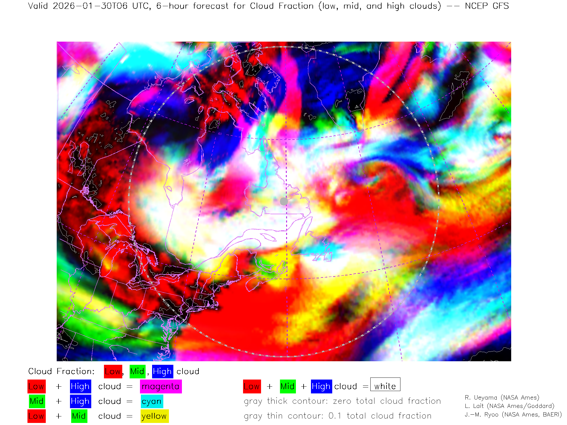 NCEP GFS Forecast Low-, Mid- and High-level Cloud Fraction