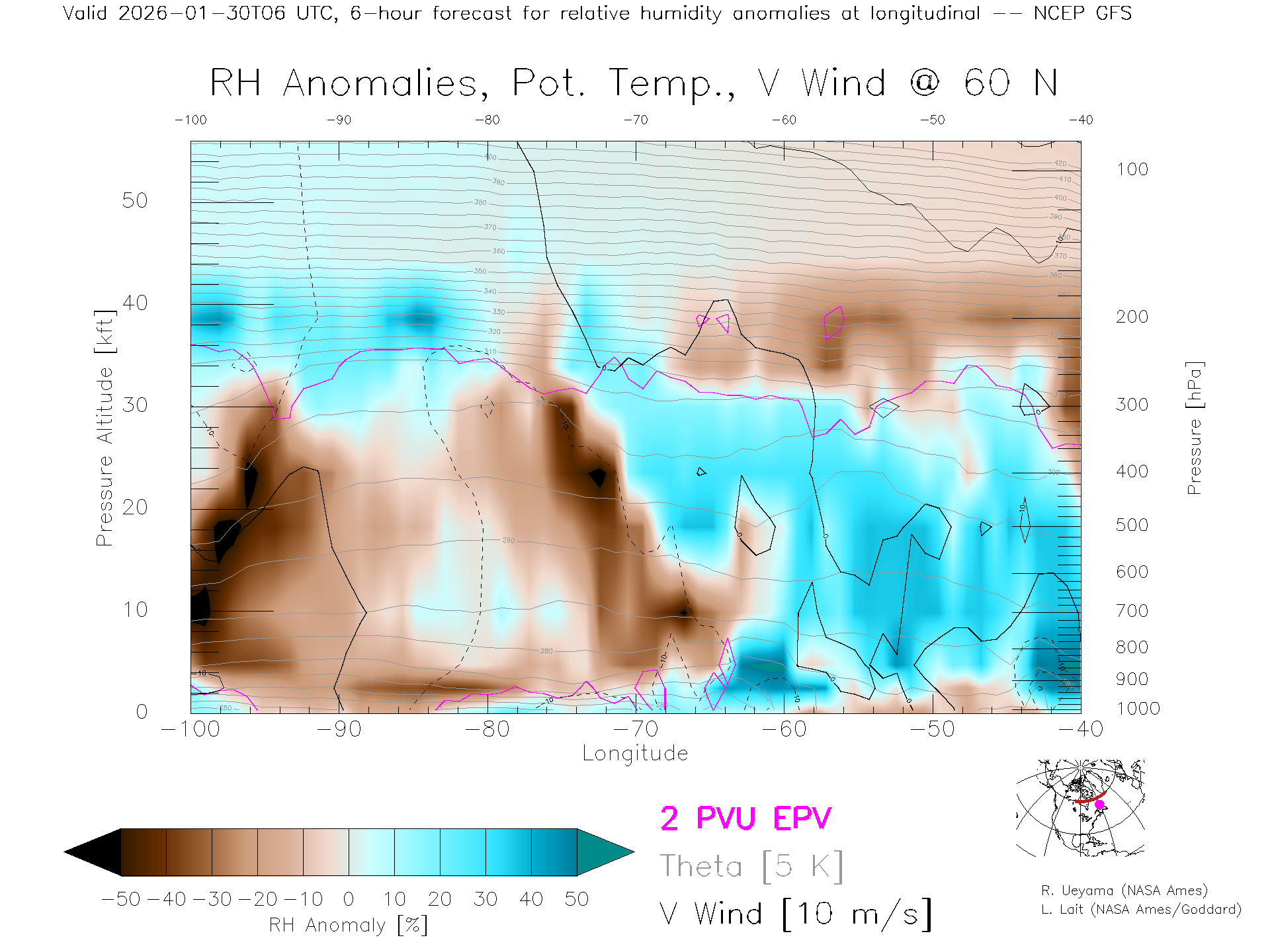 NCEP GFS Forecast Rel. Hum. X-Section (60 N)