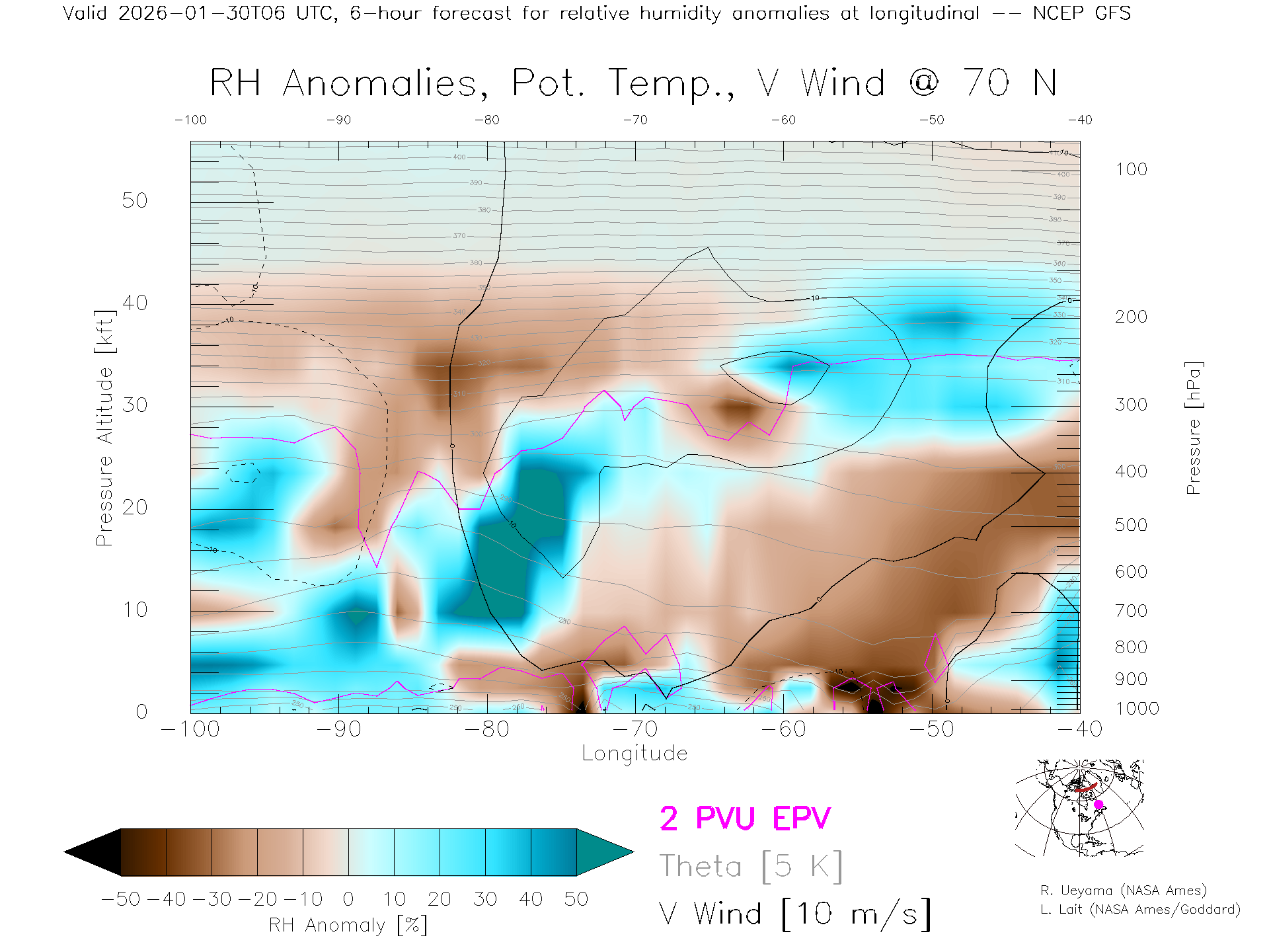 NCEP GFS Forecast Rel. Hum. X-Section (70 N)