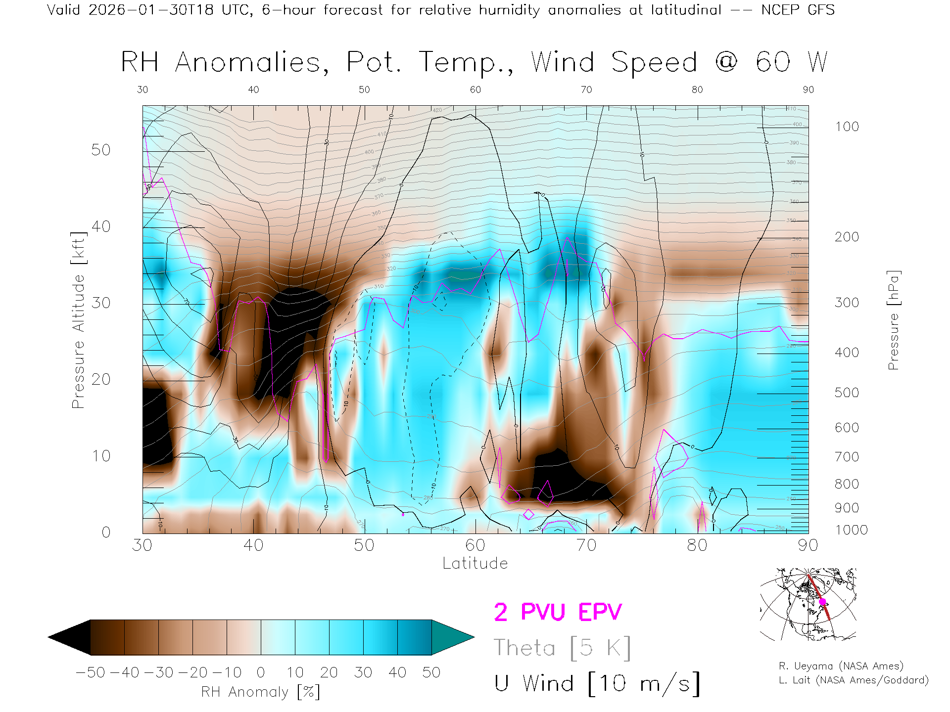 NCEP GFS Forecast Rel. Hum. X-Section (60 W)