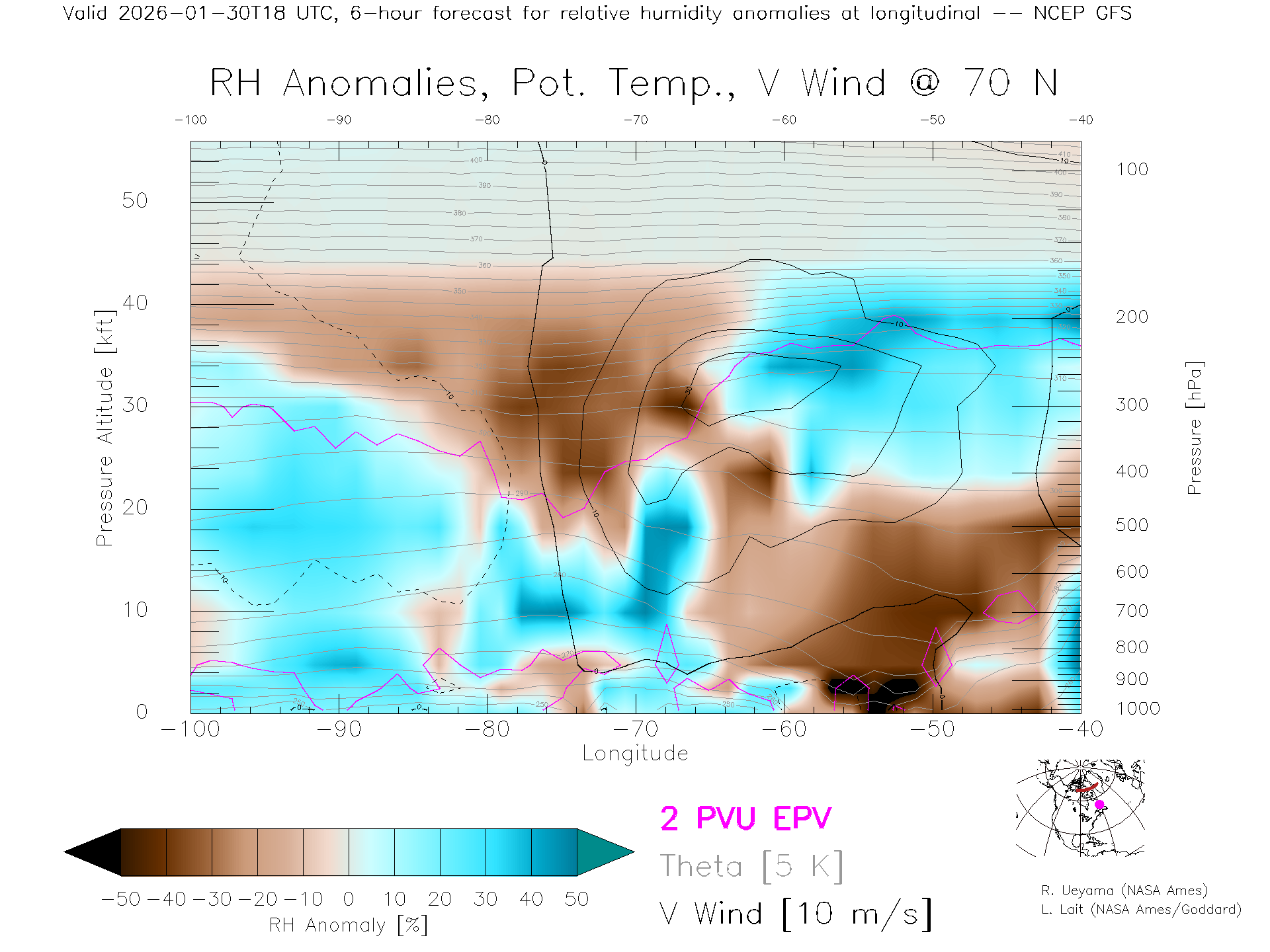 NCEP GFS Forecast Rel. Hum. X-Section (70 N)