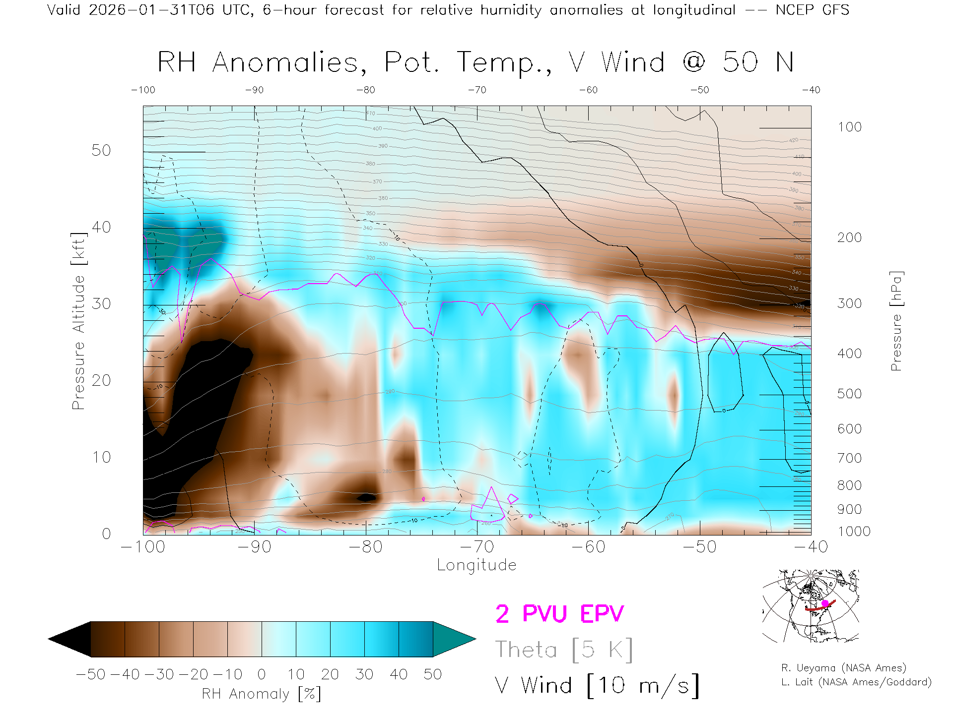 NCEP GFS Forecast Rel. Hum. X-Section (50 N)