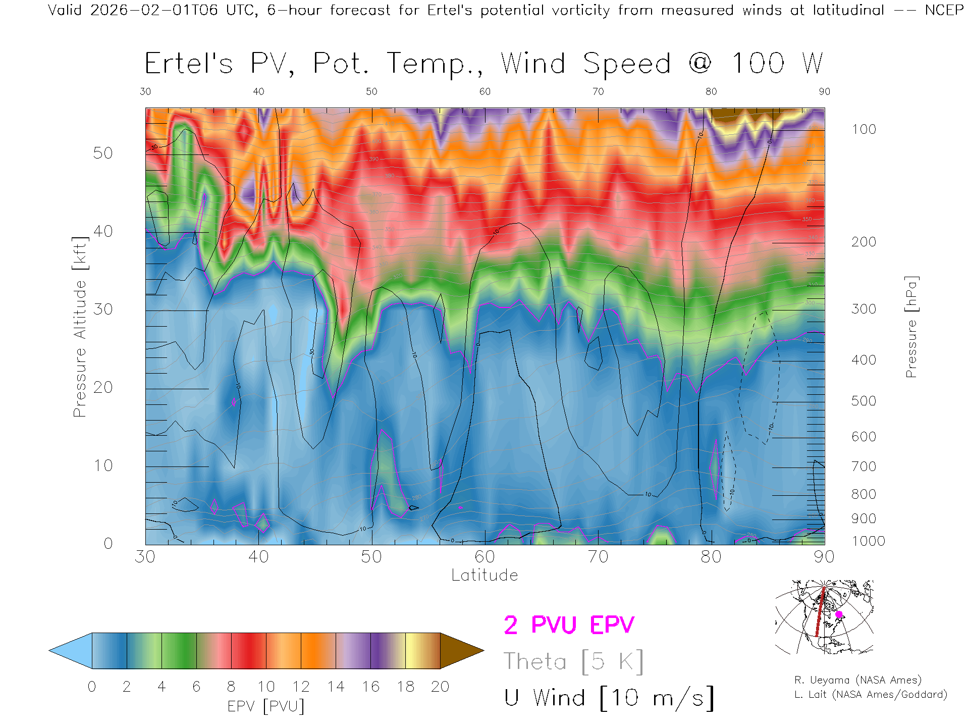 NCEP GFS Forecast PV X-Section (100 W)