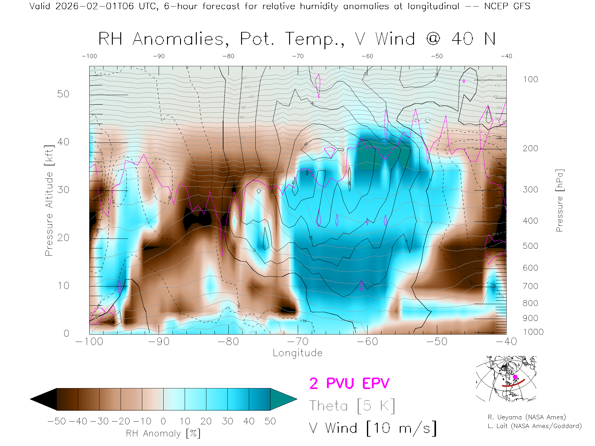 NCEP GFS Forecast Rel. Hum. X-Section (40 N)