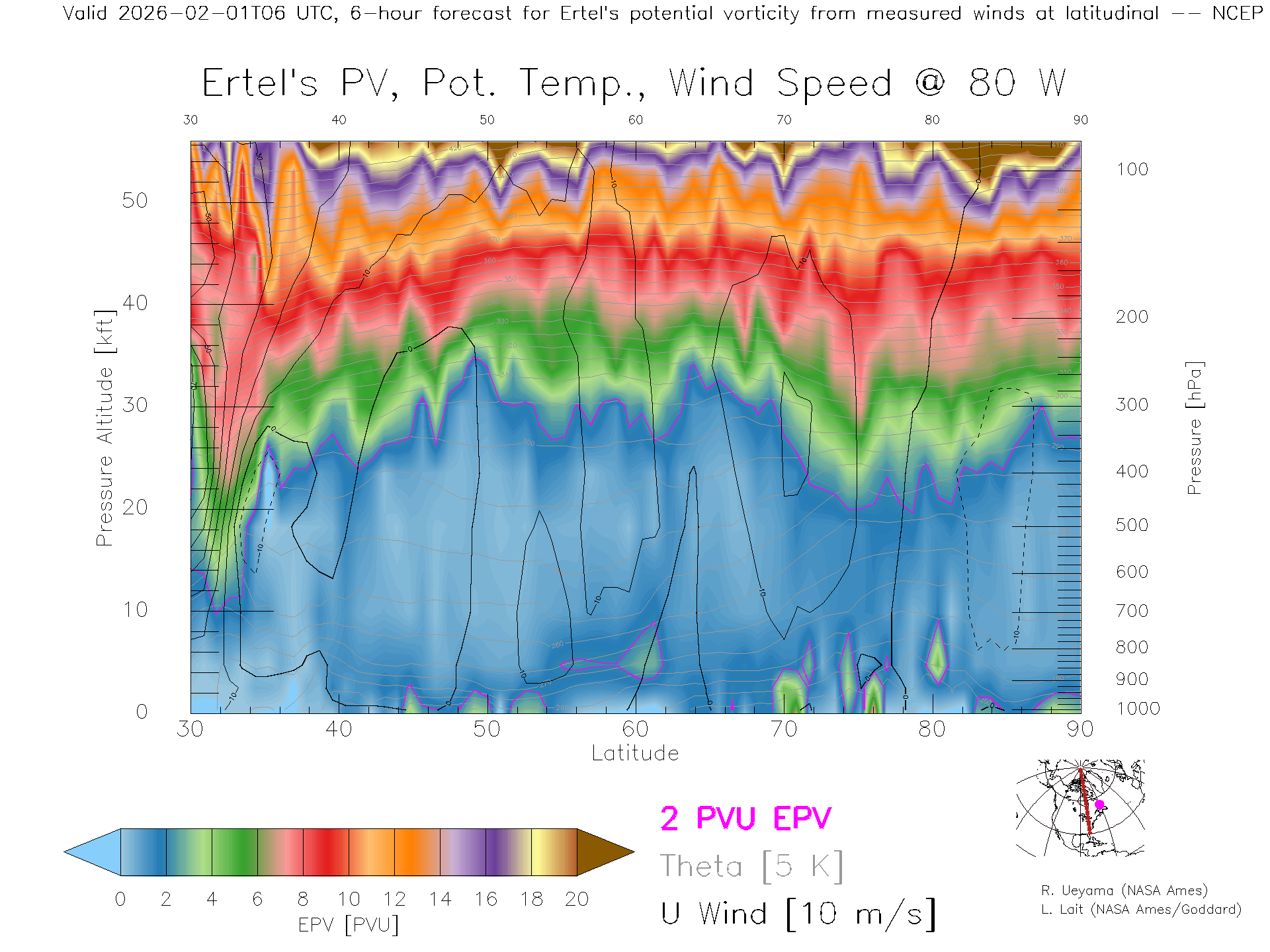 NCEP GFS Forecast PV X-Section (80 W)