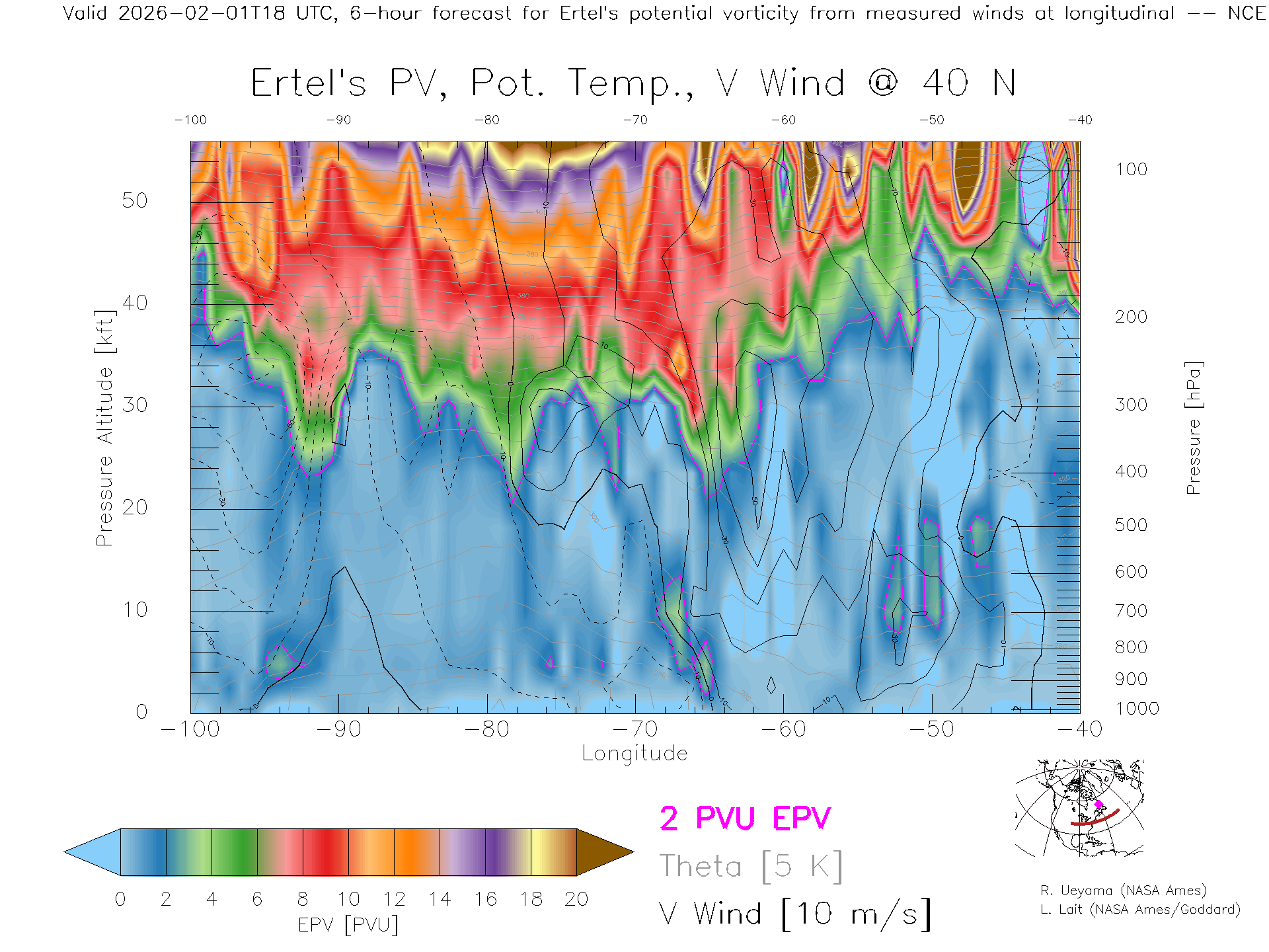 NCEP GFS Forecast PV X-Section (40 N)