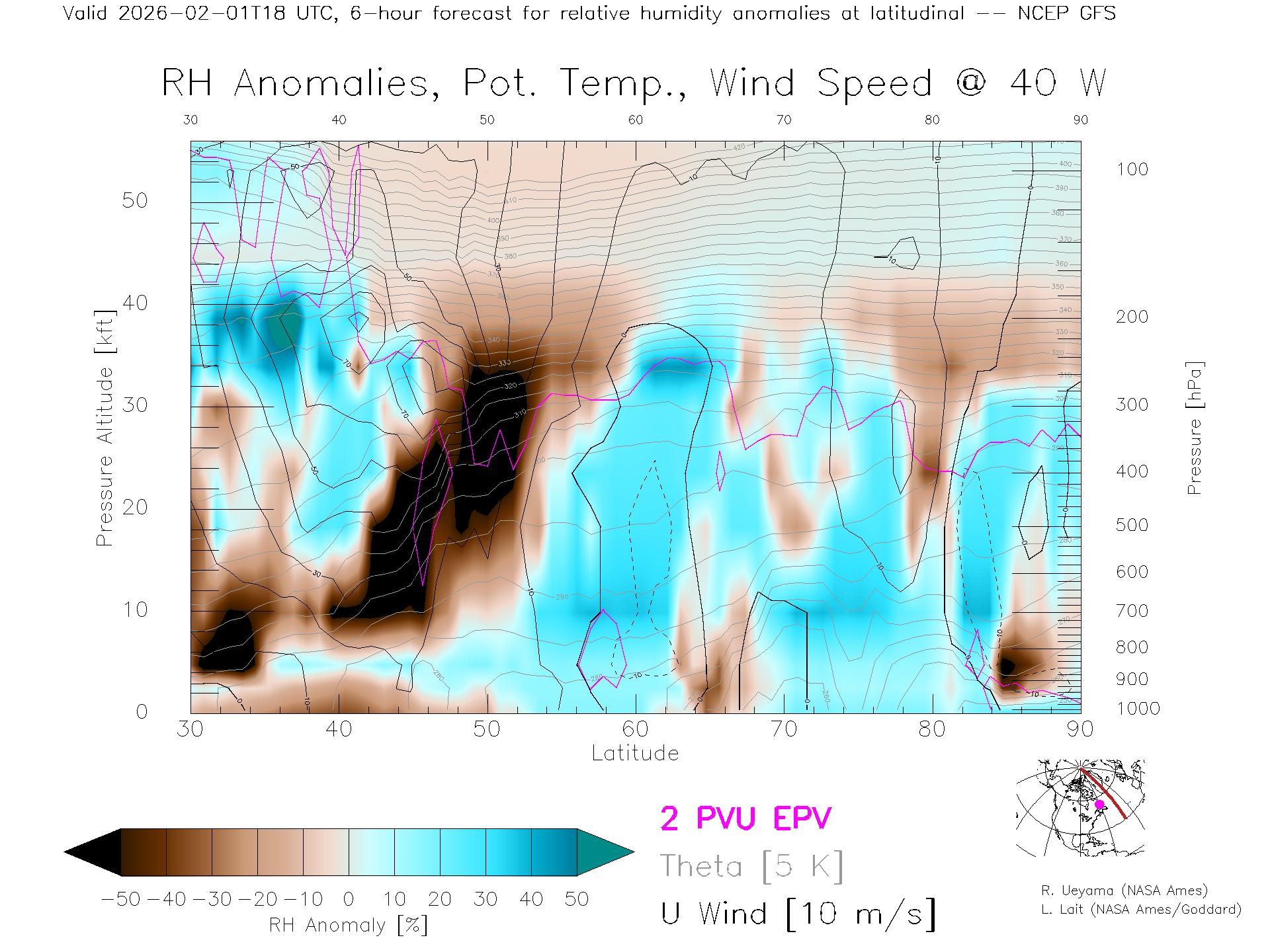 NCEP GFS Forecast Rel. Hum. X-Section (40 W)