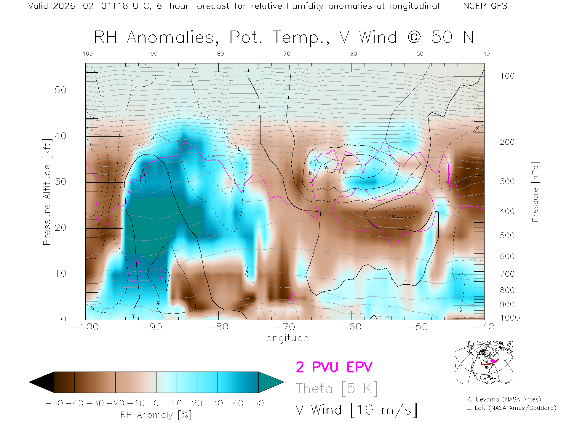 NCEP GFS Forecast Rel. Hum. X-Section (50 N)