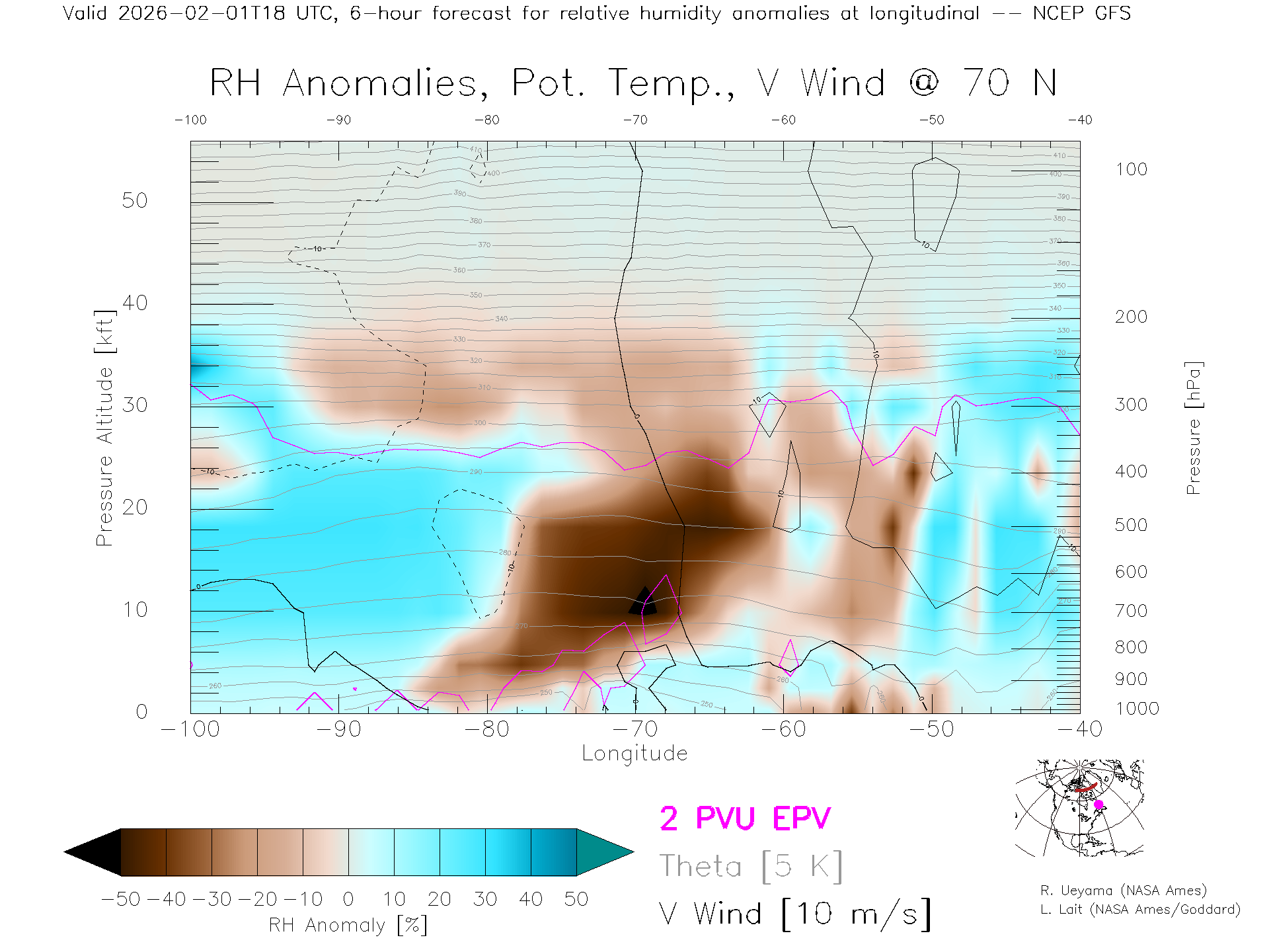 NCEP GFS Forecast Rel. Hum. X-Section (70 N)