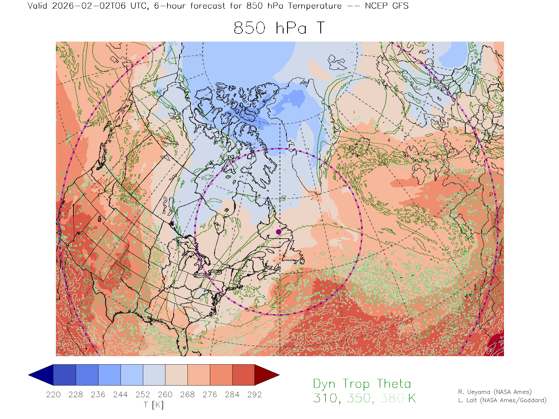 NCEP GFS Forecast 850 hPa Temp.