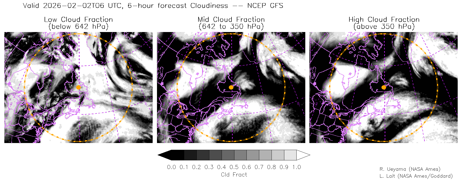 NCEP GFS Forecast Cloud Fraction (High, Mid, Low)