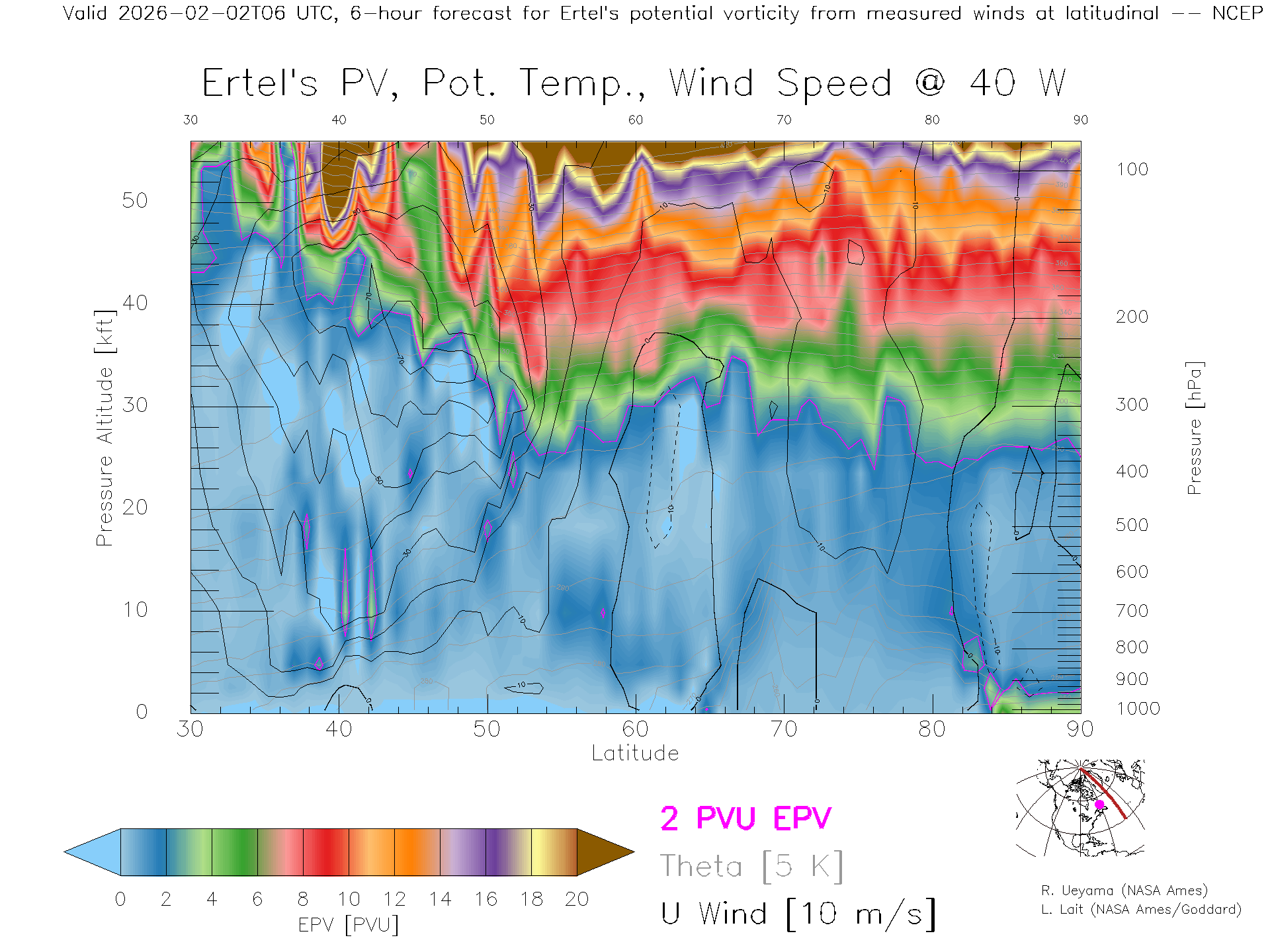 NCEP GFS Forecast PV X-Section (40 W)