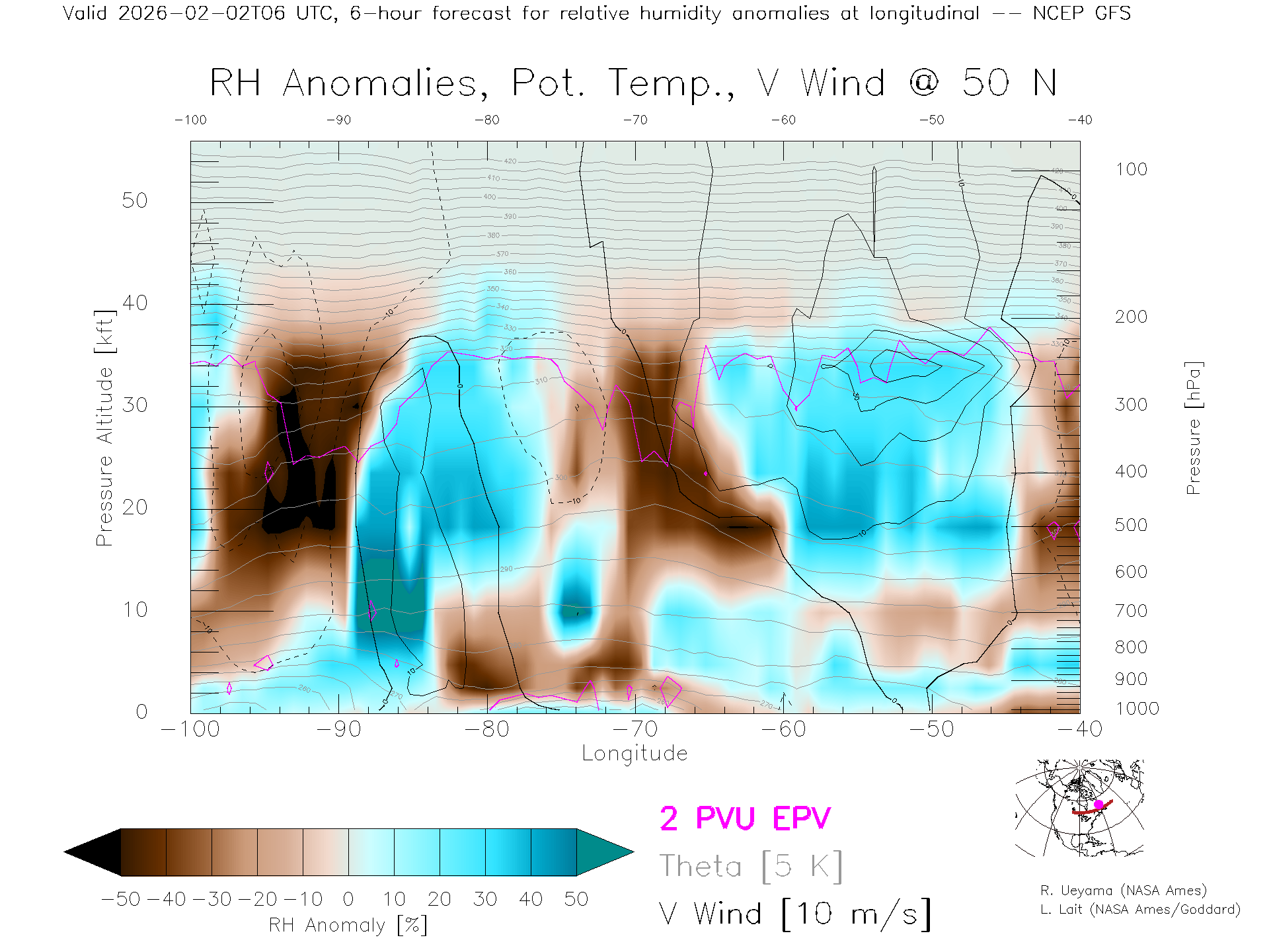 NCEP GFS Forecast Rel. Hum. X-Section (50 N)