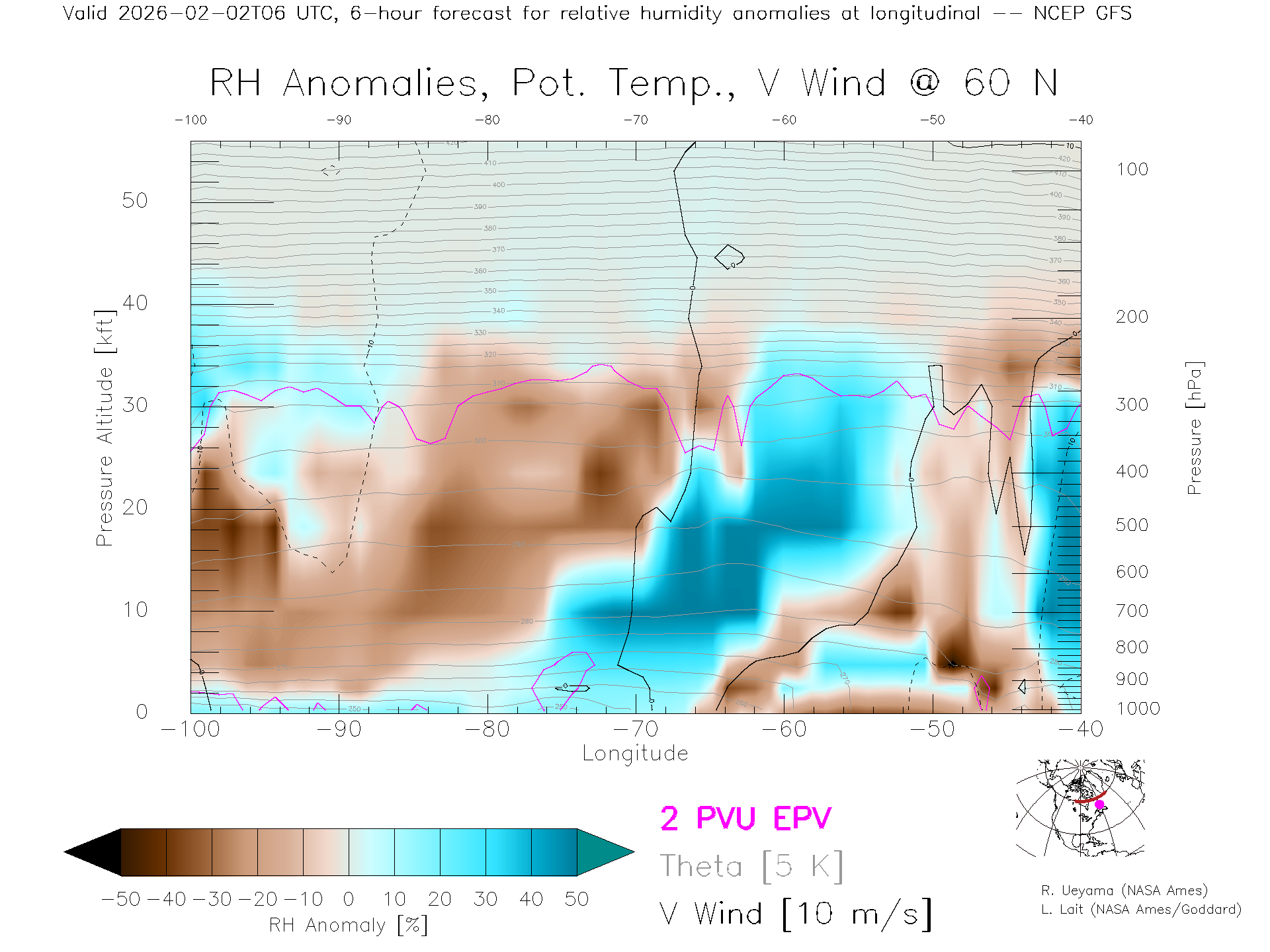 NCEP GFS Forecast Rel. Hum. X-Section (60 N)