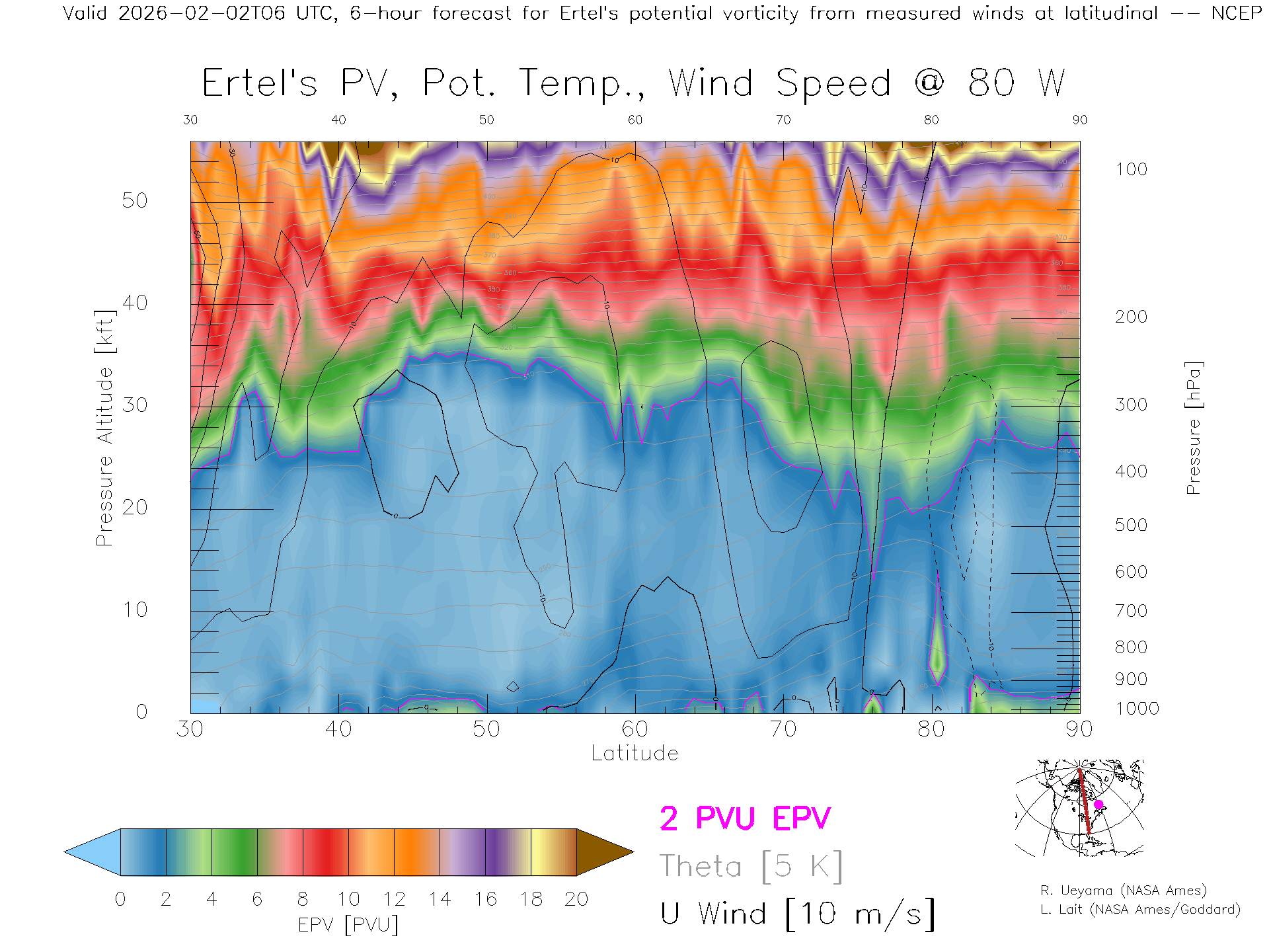 NCEP GFS Forecast PV X-Section (80 W)