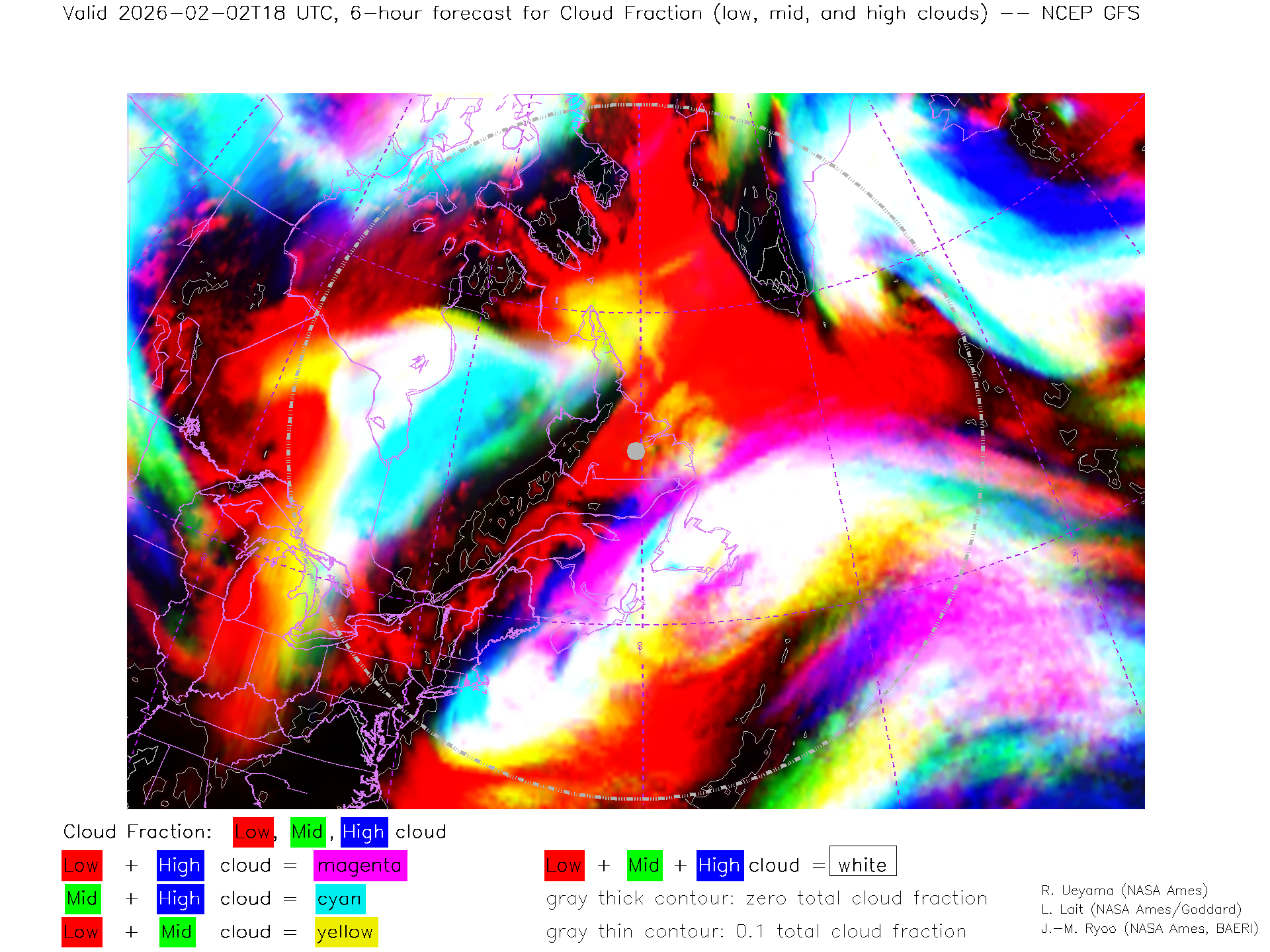 NCEP GFS Forecast Low-, Mid- and High-level Cloud Fraction