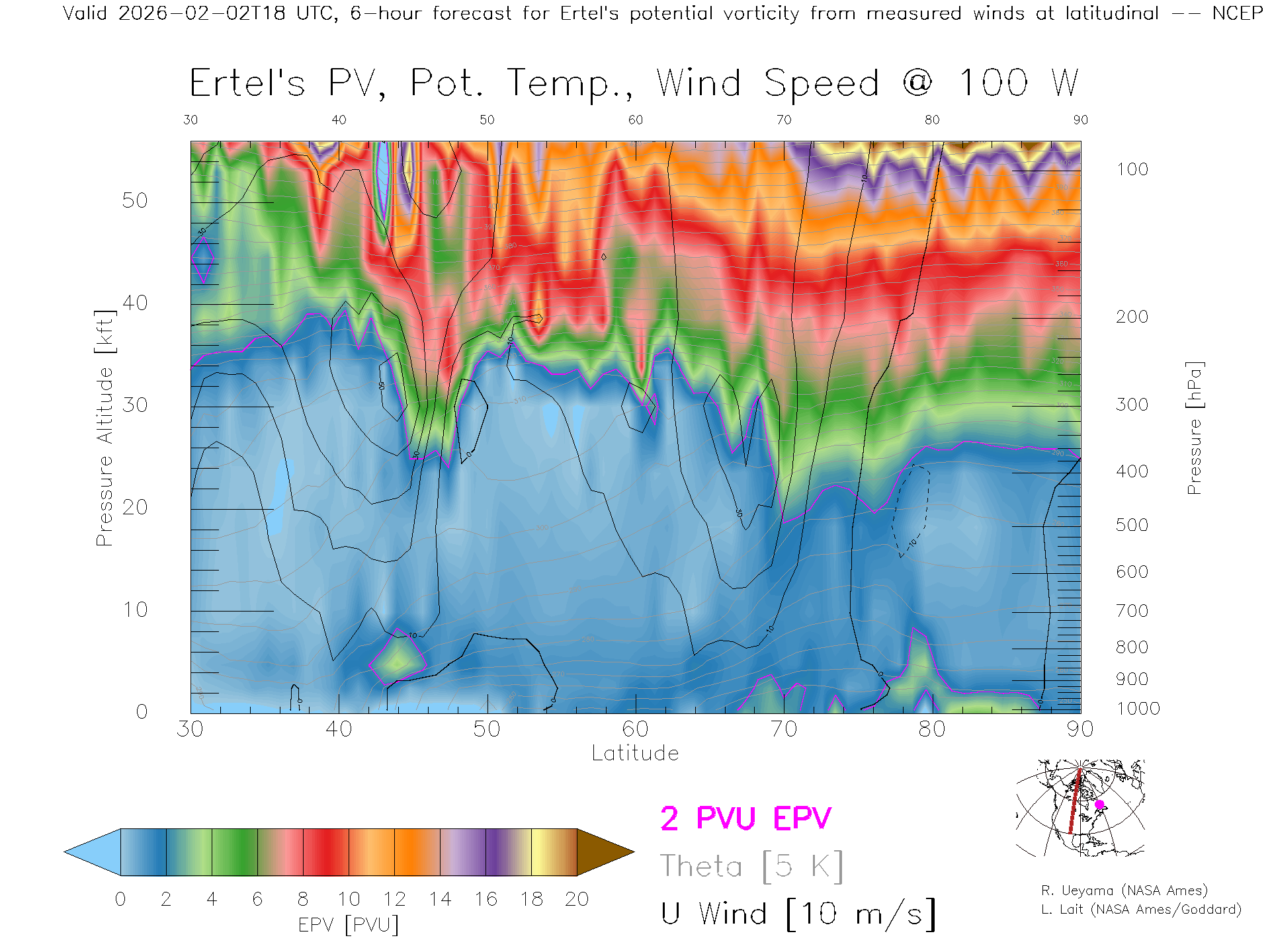 NCEP GFS Forecast PV X-Section (100 W)