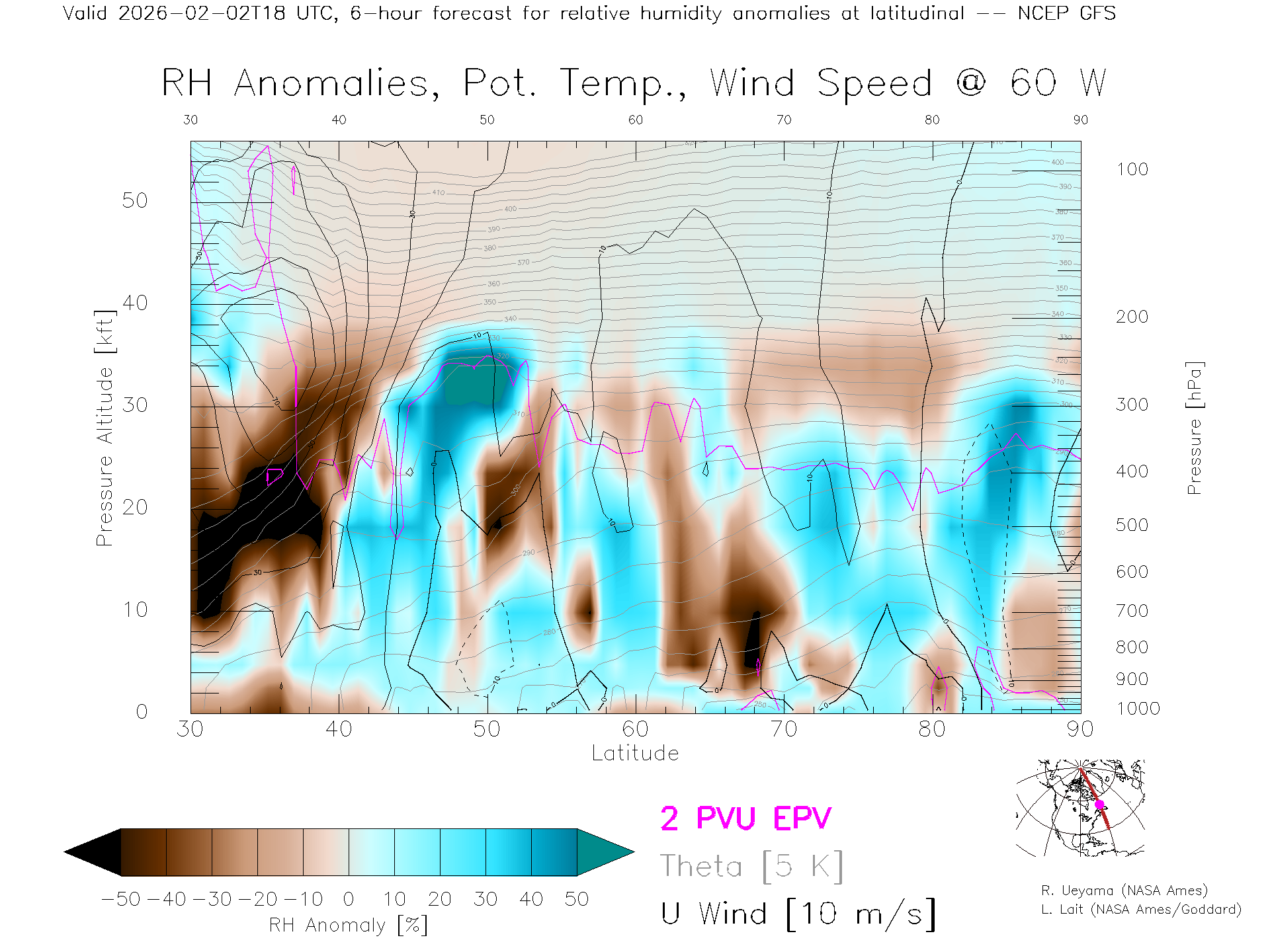 NCEP GFS Forecast Rel. Hum. X-Section (60 W)