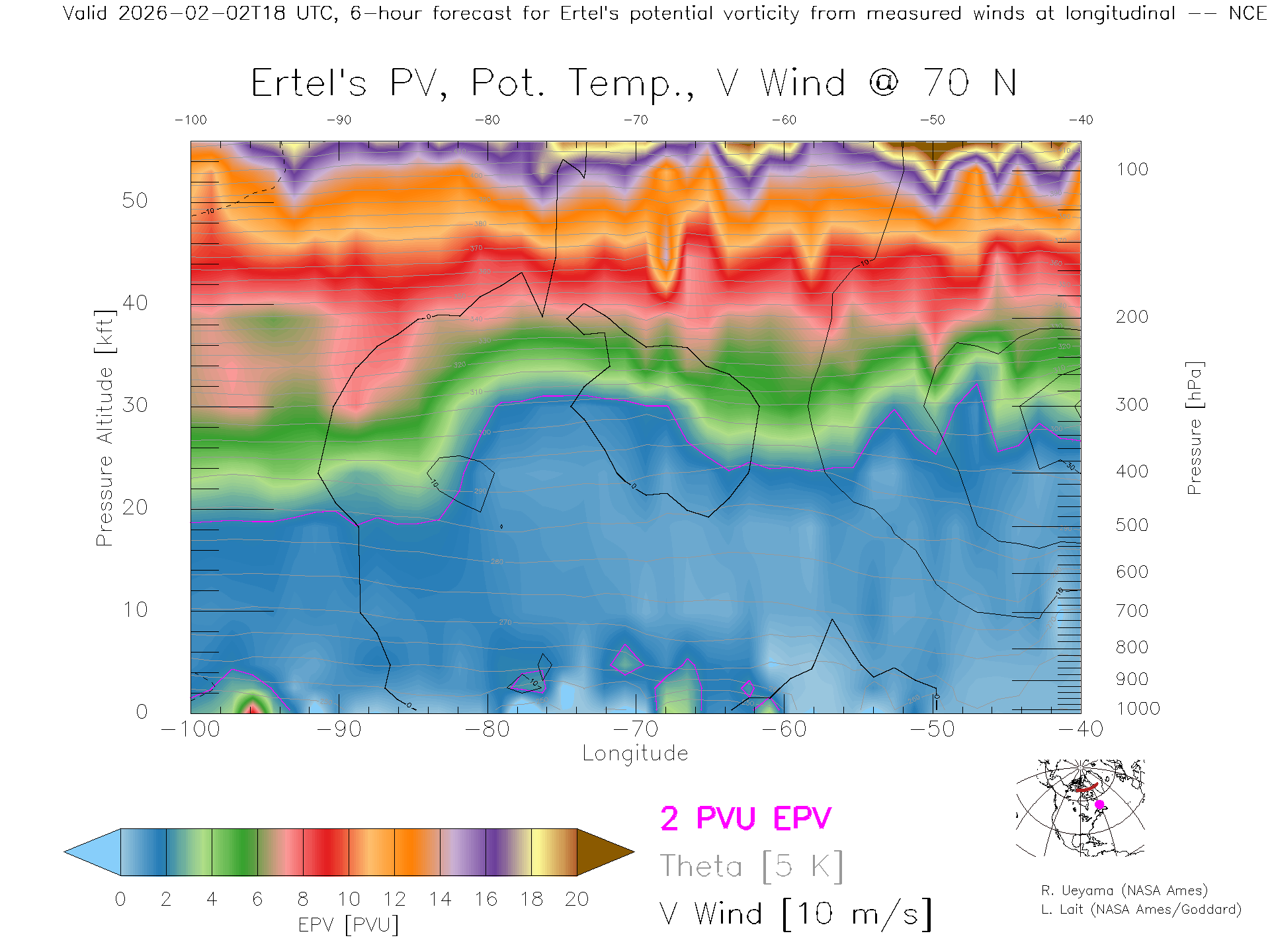 NCEP GFS Forecast PV X-Section (70 N)