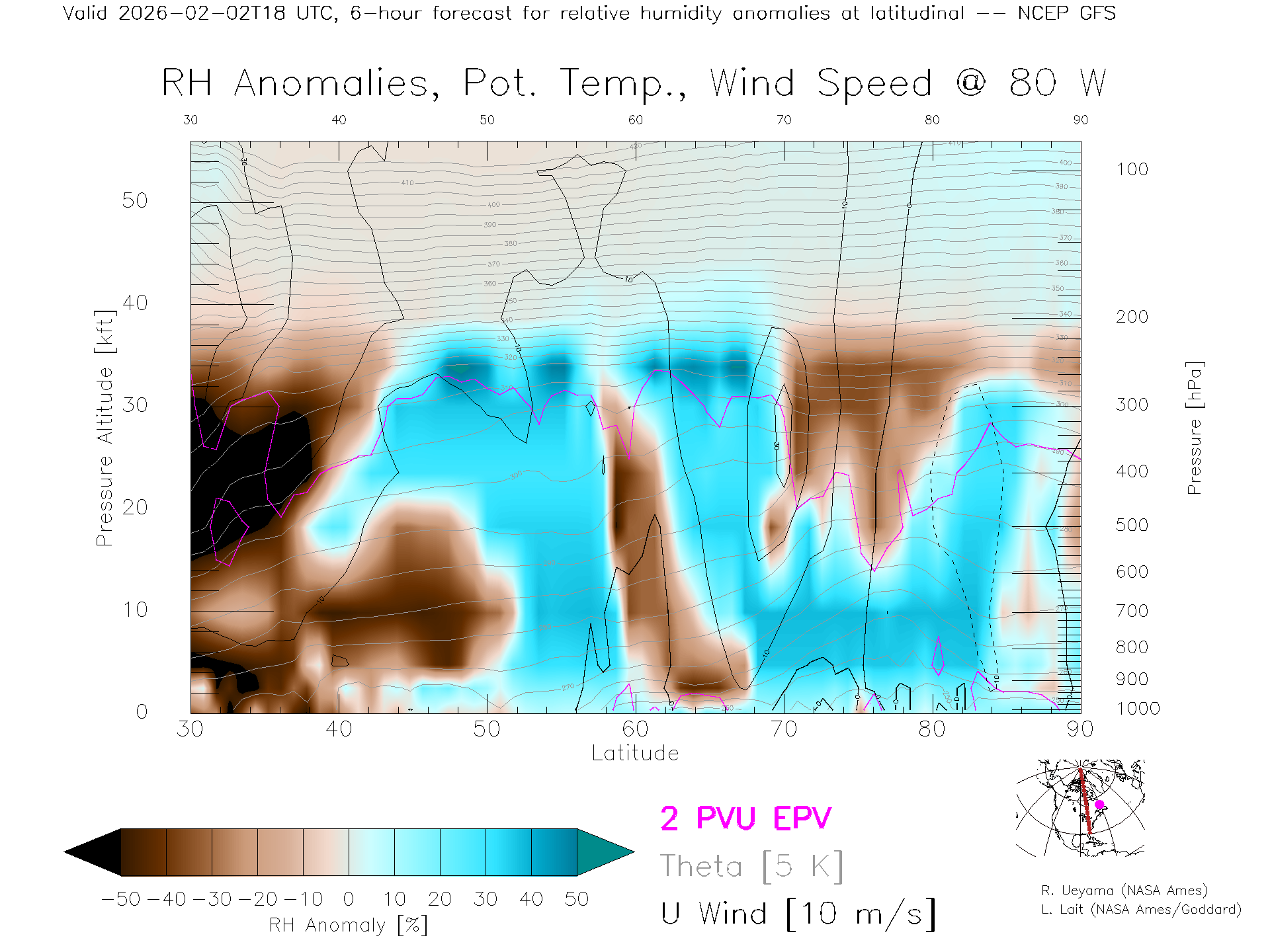 NCEP GFS Forecast Rel. Hum. X-Section (80 W)
