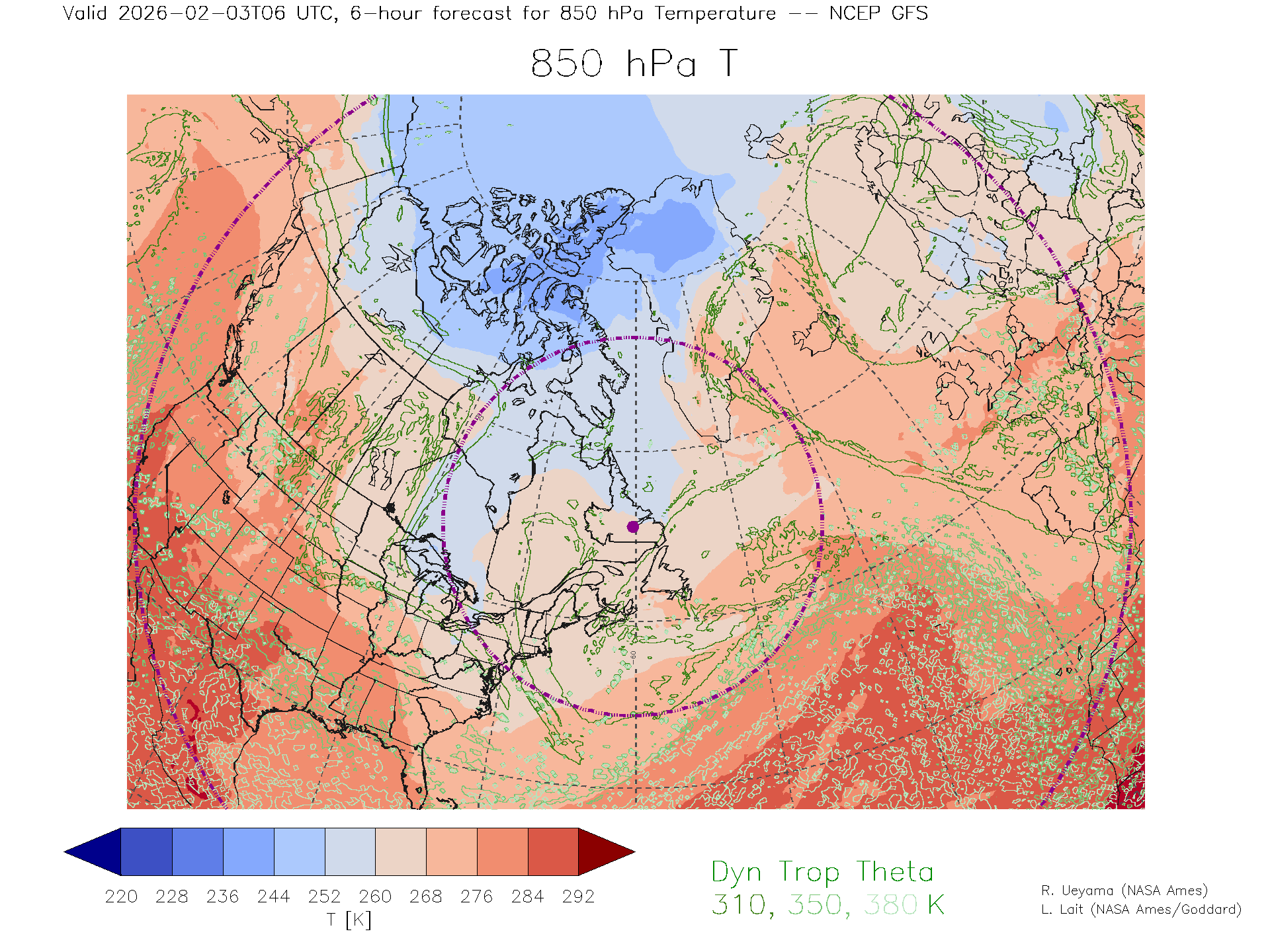 NCEP GFS Forecast 850 hPa Temp.