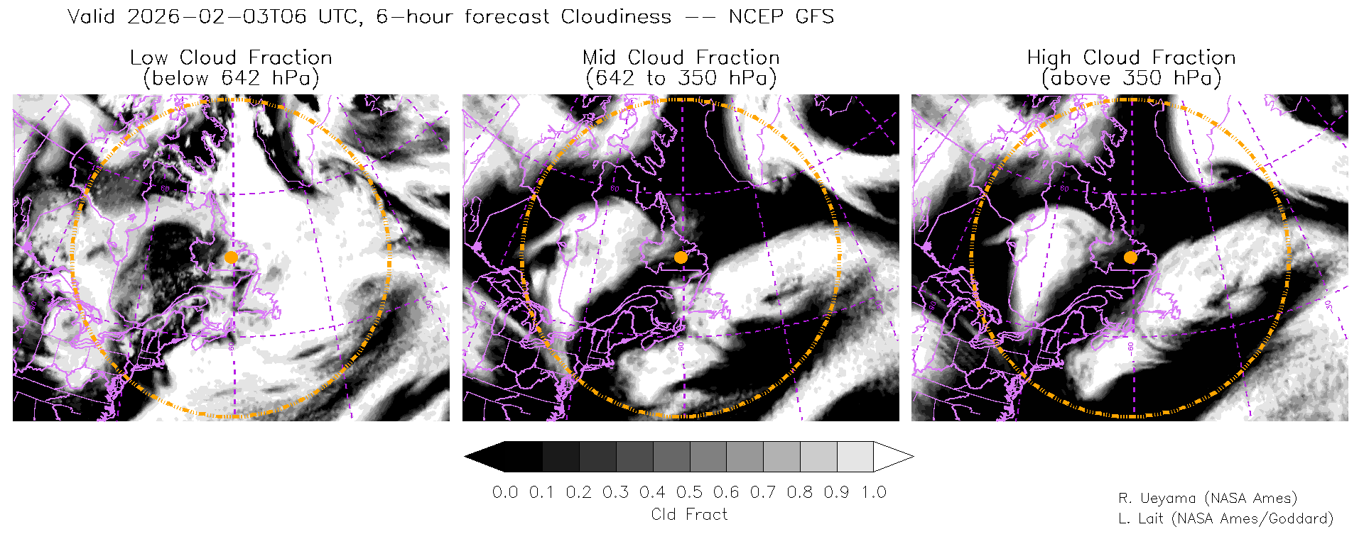 NCEP GFS Forecast Cloud Fraction (High, Mid, Low)