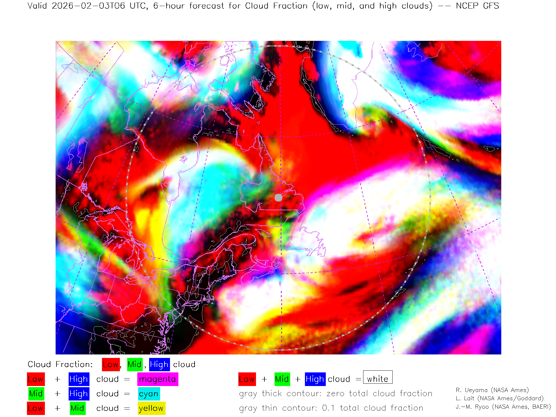 NCEP GFS Forecast Low-, Mid- and High-level Cloud Fraction