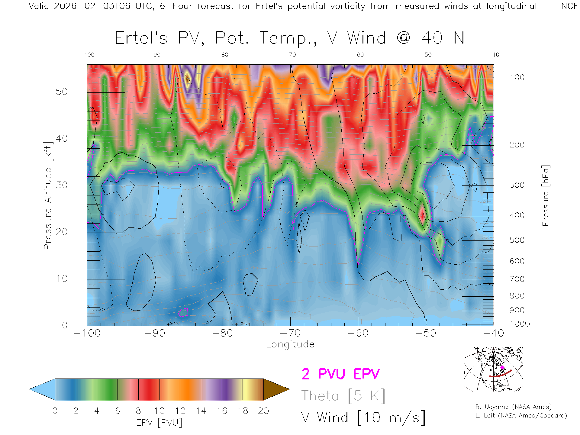 NCEP GFS Forecast PV X-Section (40 N)