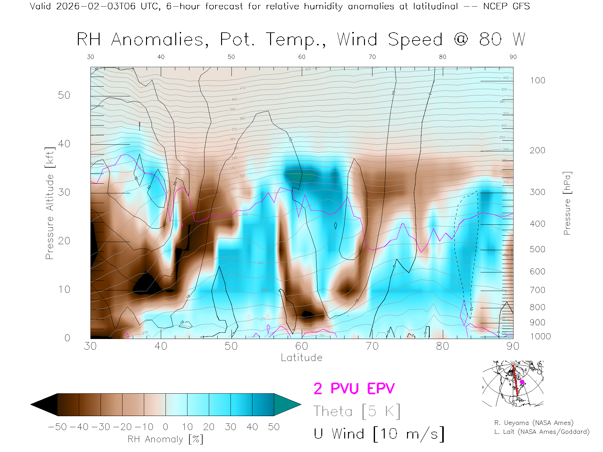 NCEP GFS Forecast Rel. Hum. X-Section (80 W)