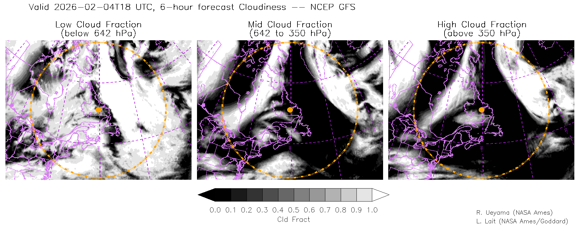 NCEP GFS Forecast Cloud Fraction (High, Mid, Low)