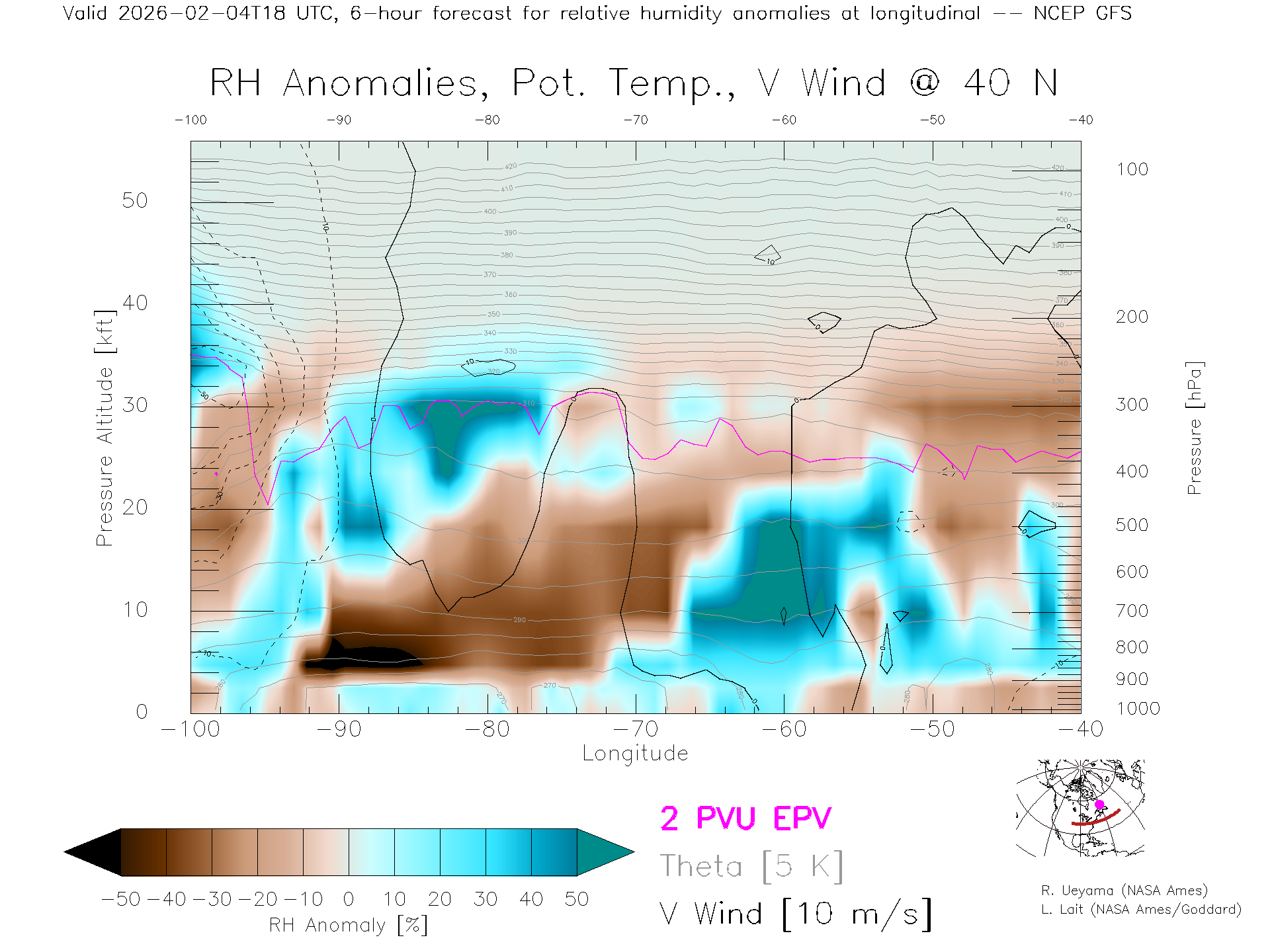 NCEP GFS Forecast Rel. Hum. X-Section (40 N)