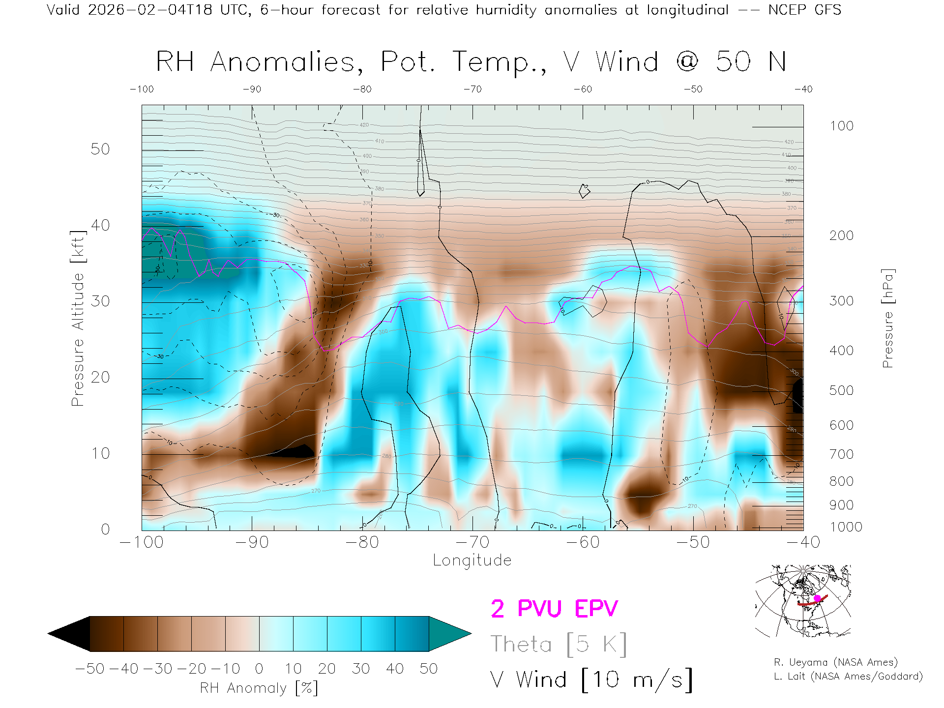 NCEP GFS Forecast Rel. Hum. X-Section (50 N)