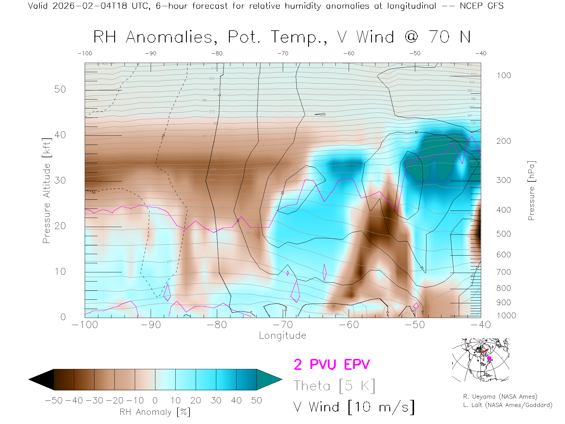 NCEP GFS Forecast Rel. Hum. X-Section (70 N)