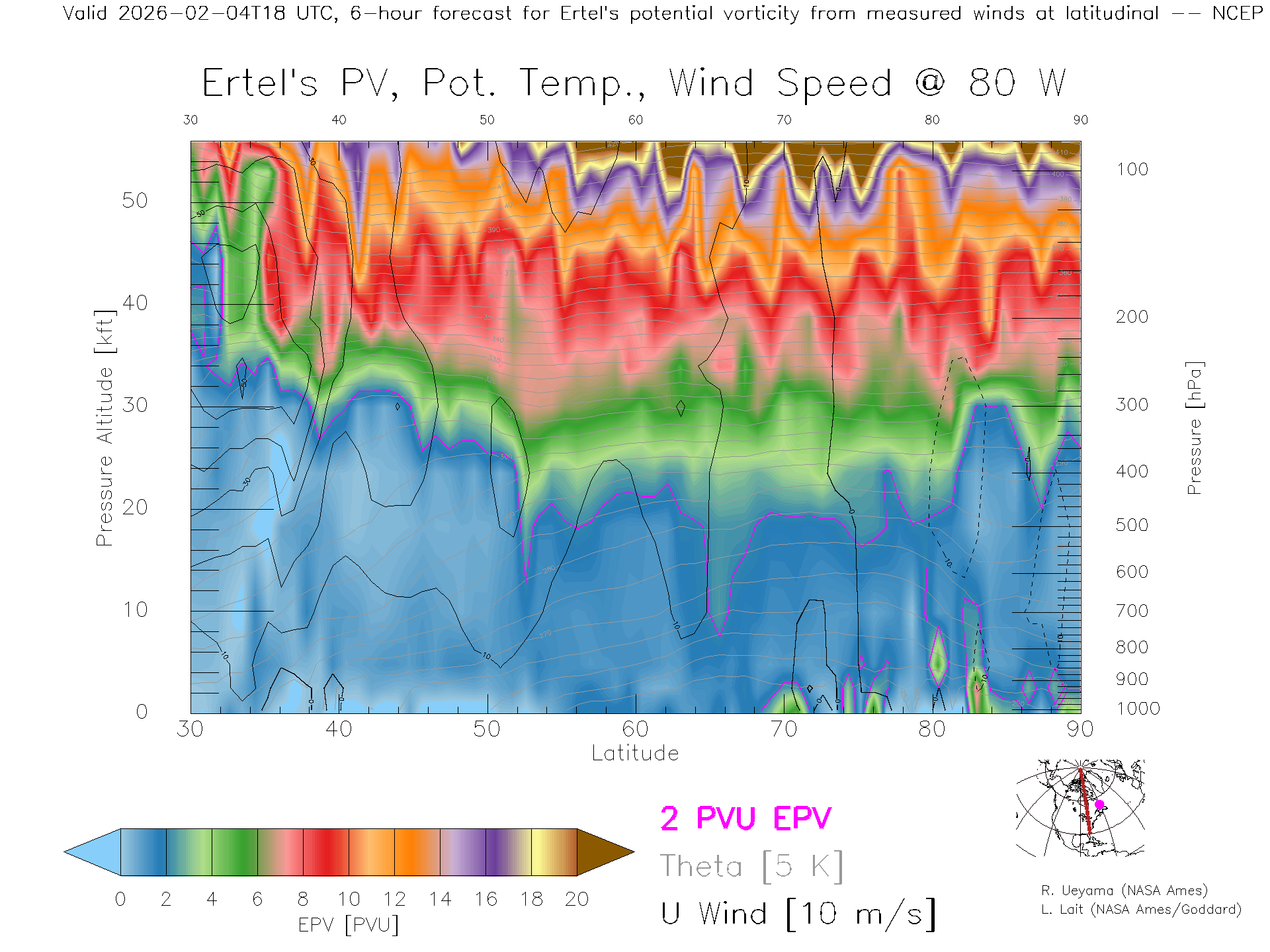 NCEP GFS Forecast PV X-Section (80 W)