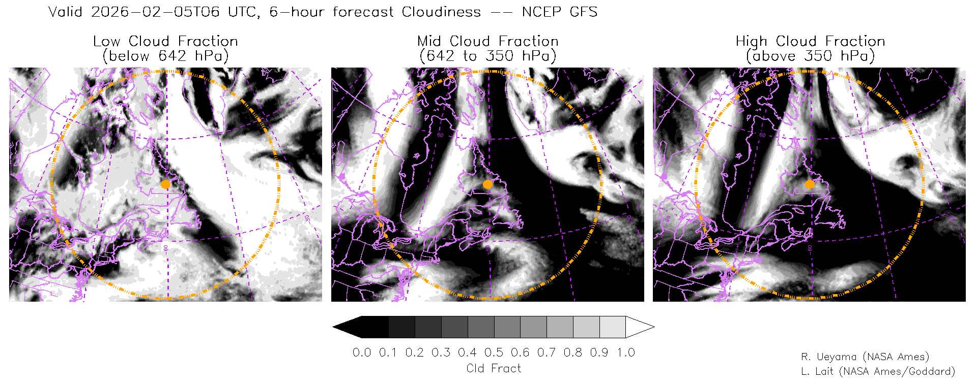 NCEP GFS Forecast Cloud Fraction (High, Mid, Low)
