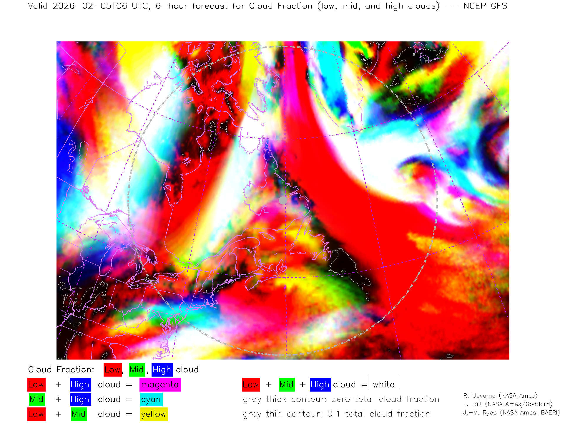 NCEP GFS Forecast Low-, Mid- and High-level Cloud Fraction