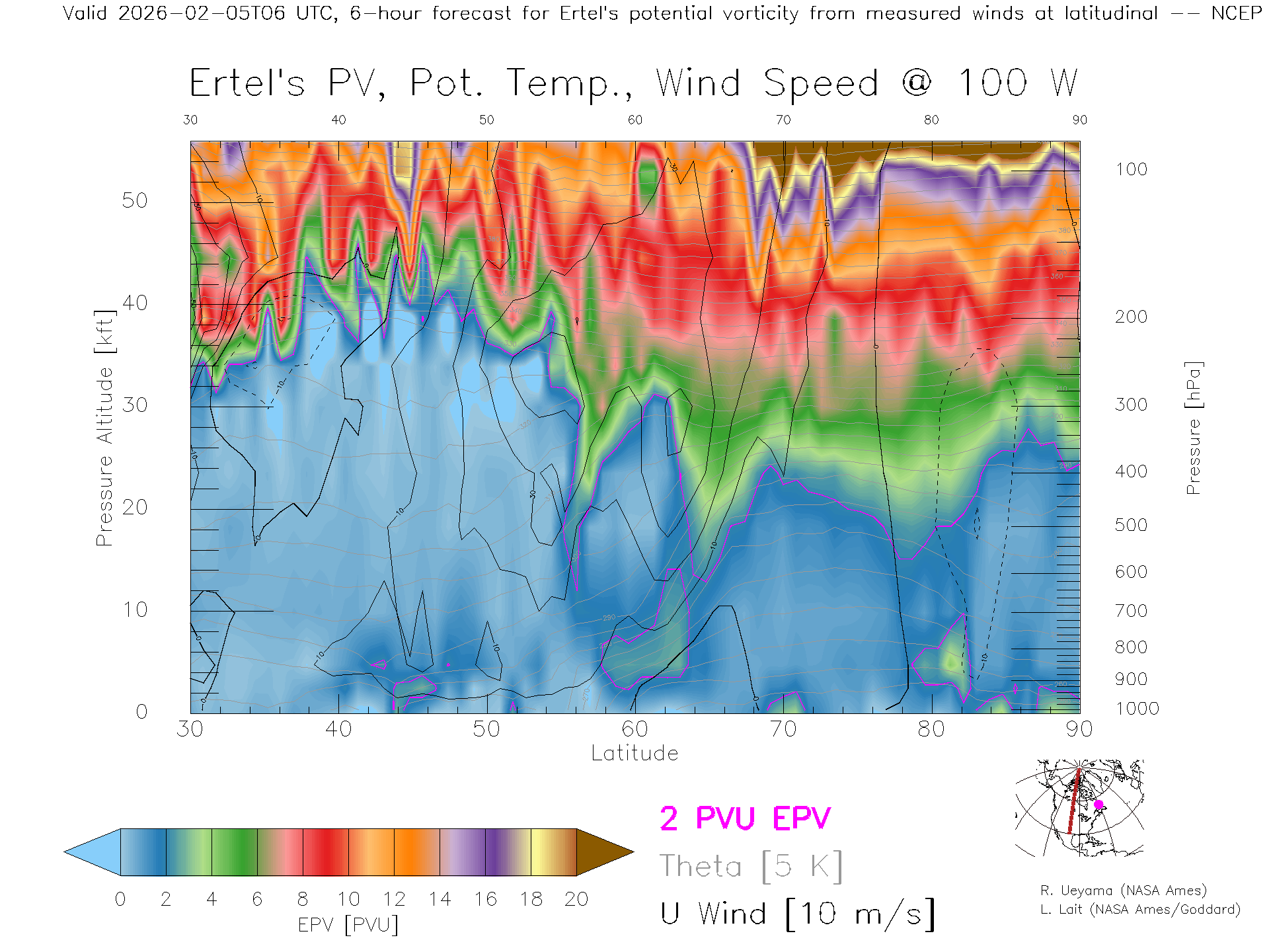 NCEP GFS Forecast PV X-Section (100 W)