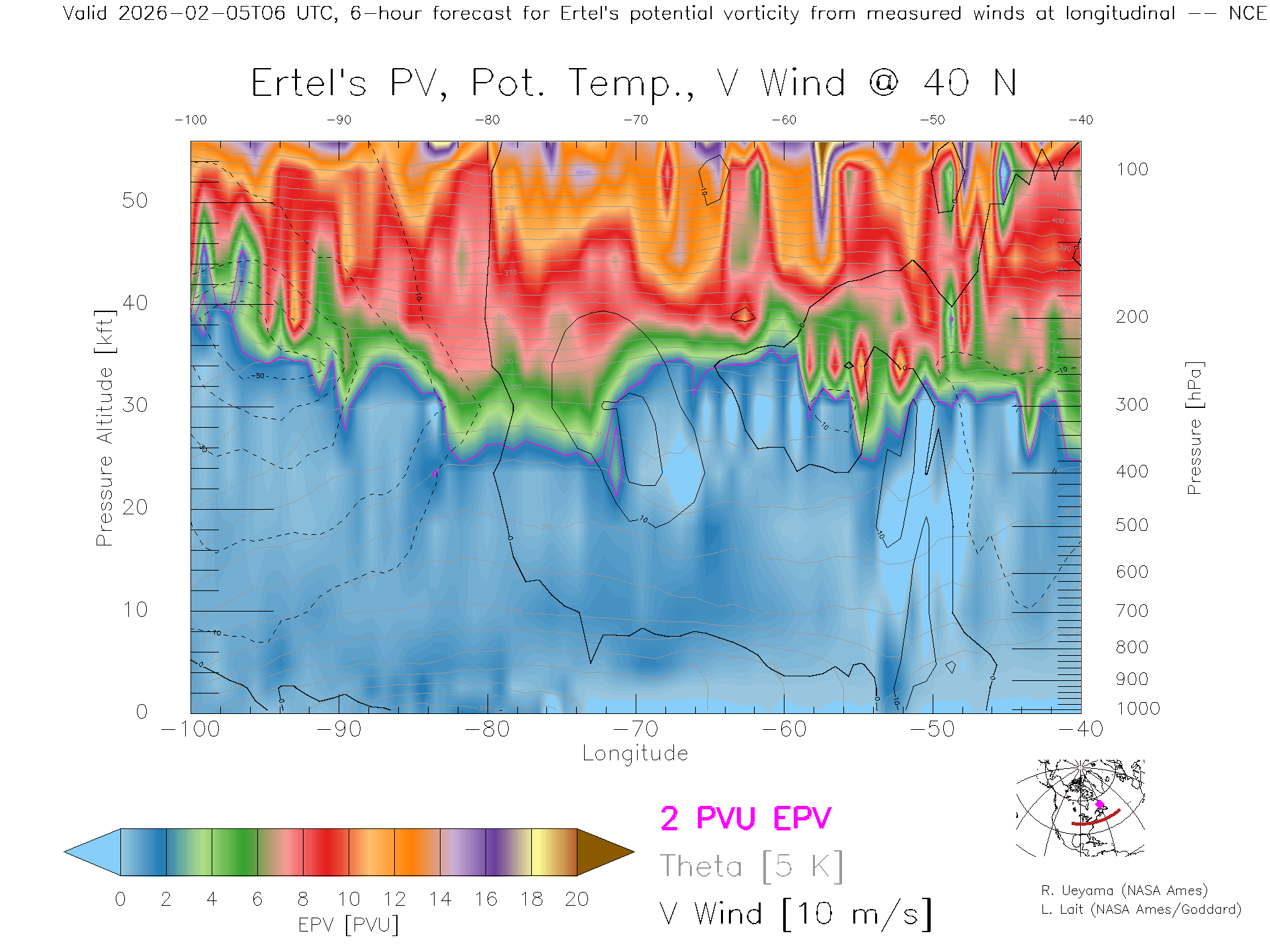 NCEP GFS Forecast PV X-Section (40 N)