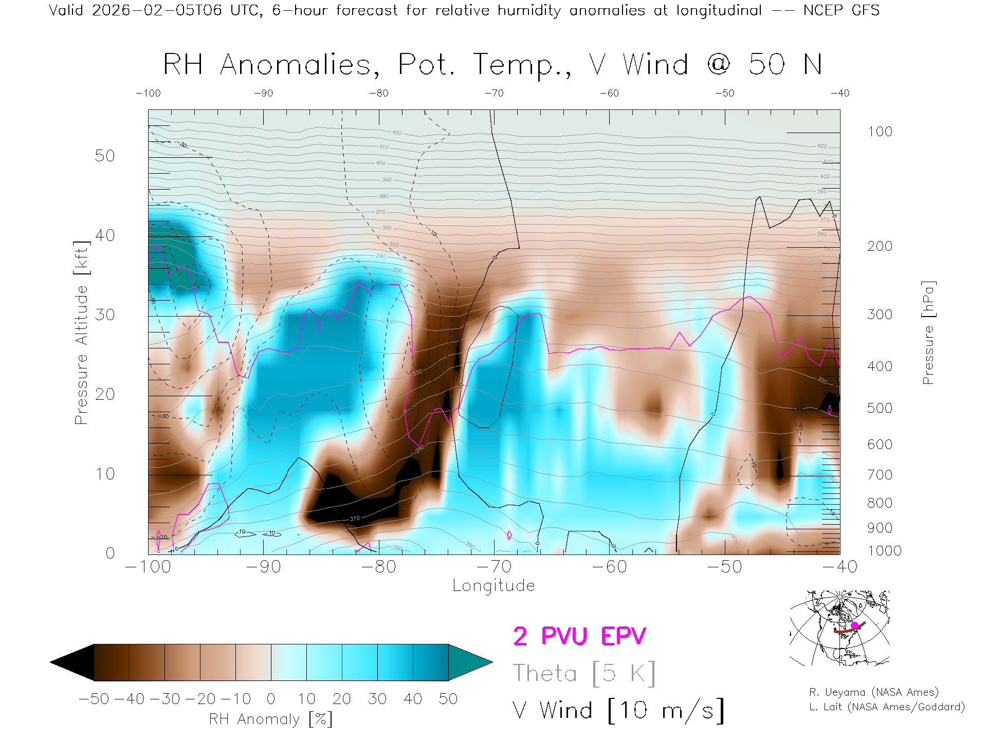NCEP GFS Forecast Rel. Hum. X-Section (50 N)