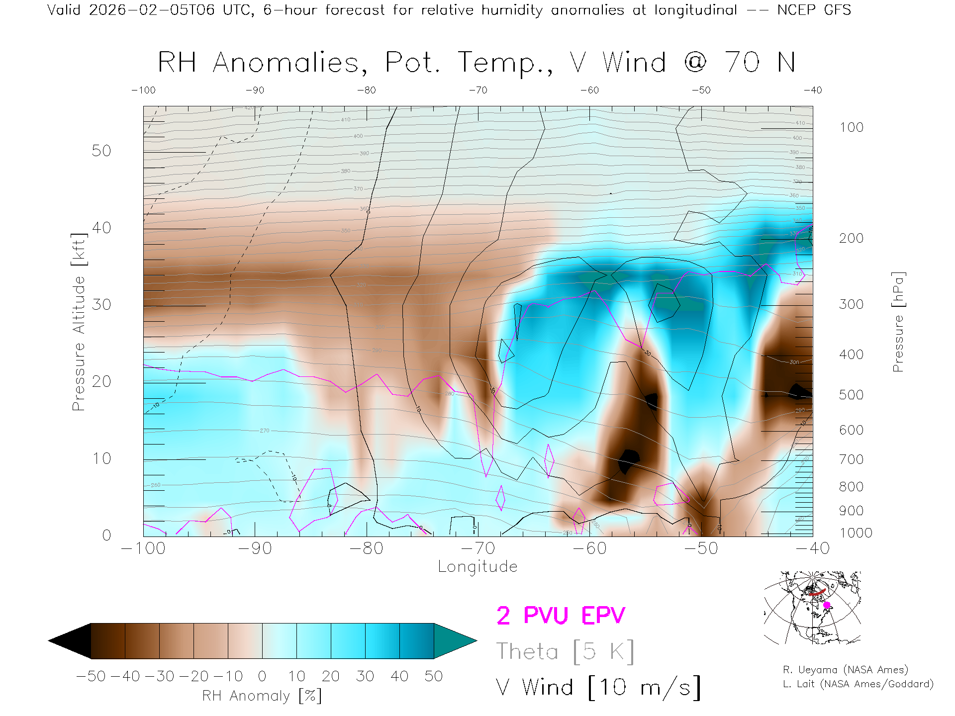NCEP GFS Forecast Rel. Hum. X-Section (70 N)