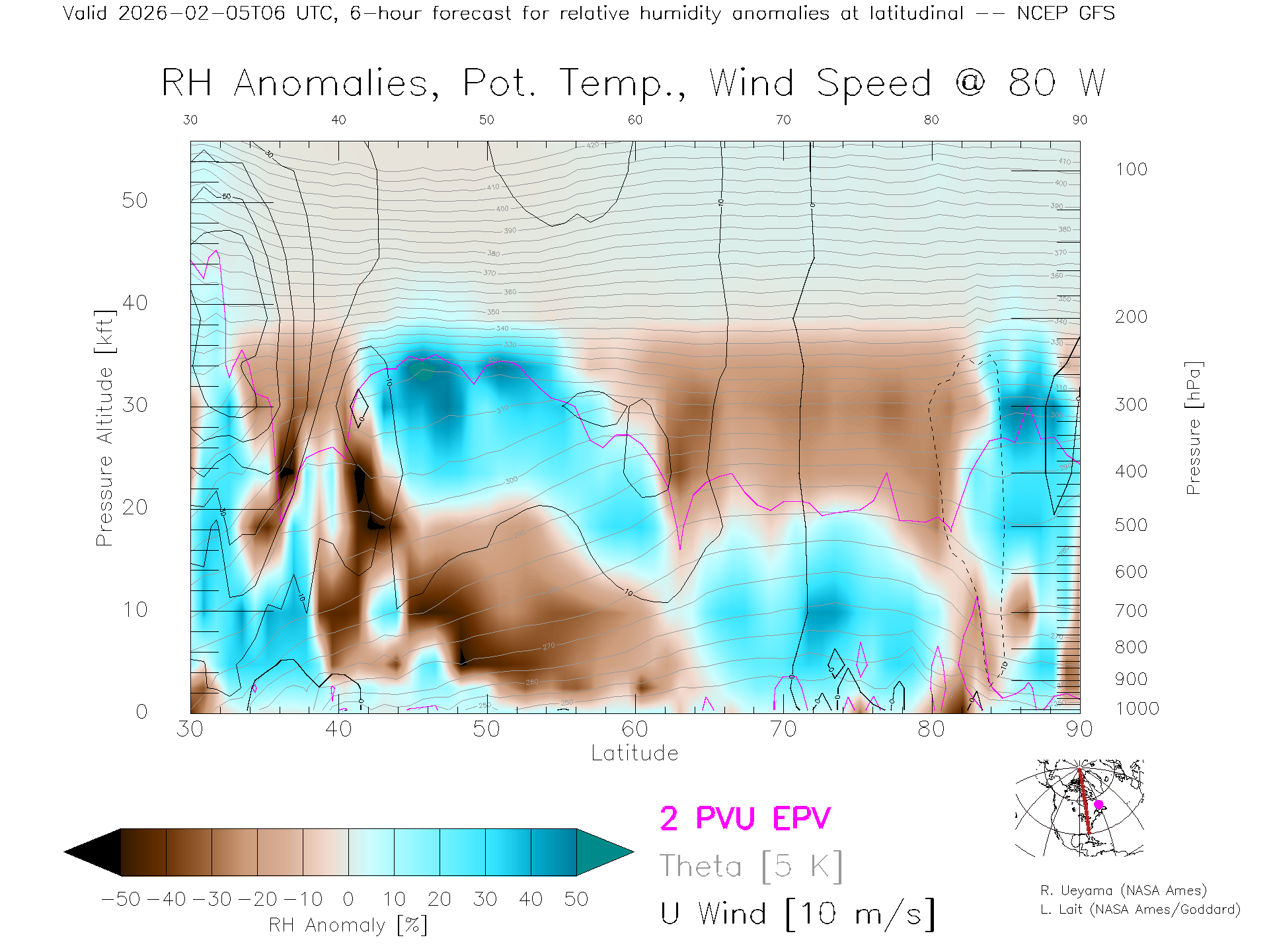 NCEP GFS Forecast Rel. Hum. X-Section (80 W)