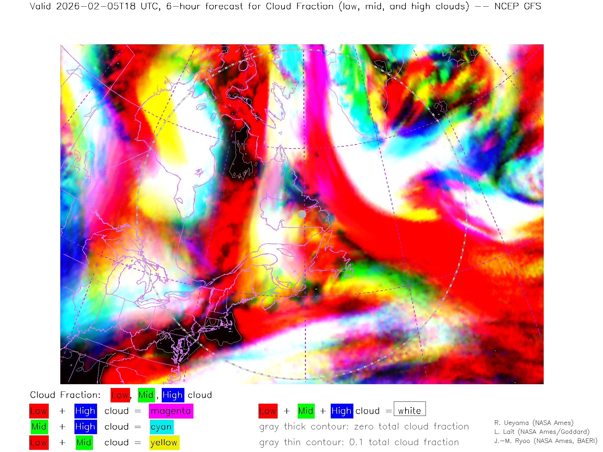 NCEP GFS Forecast Low-, Mid- and High-level Cloud Fraction