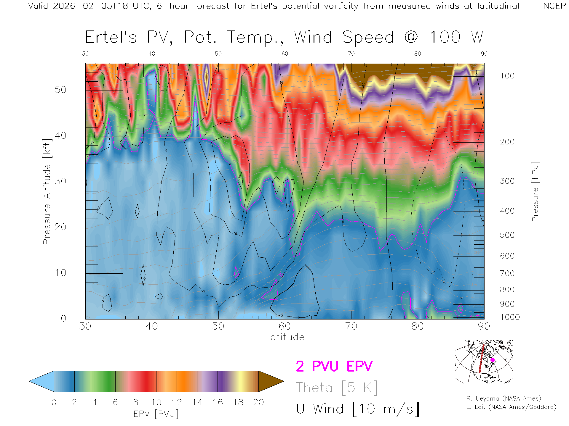 NCEP GFS Forecast PV X-Section (100 W)