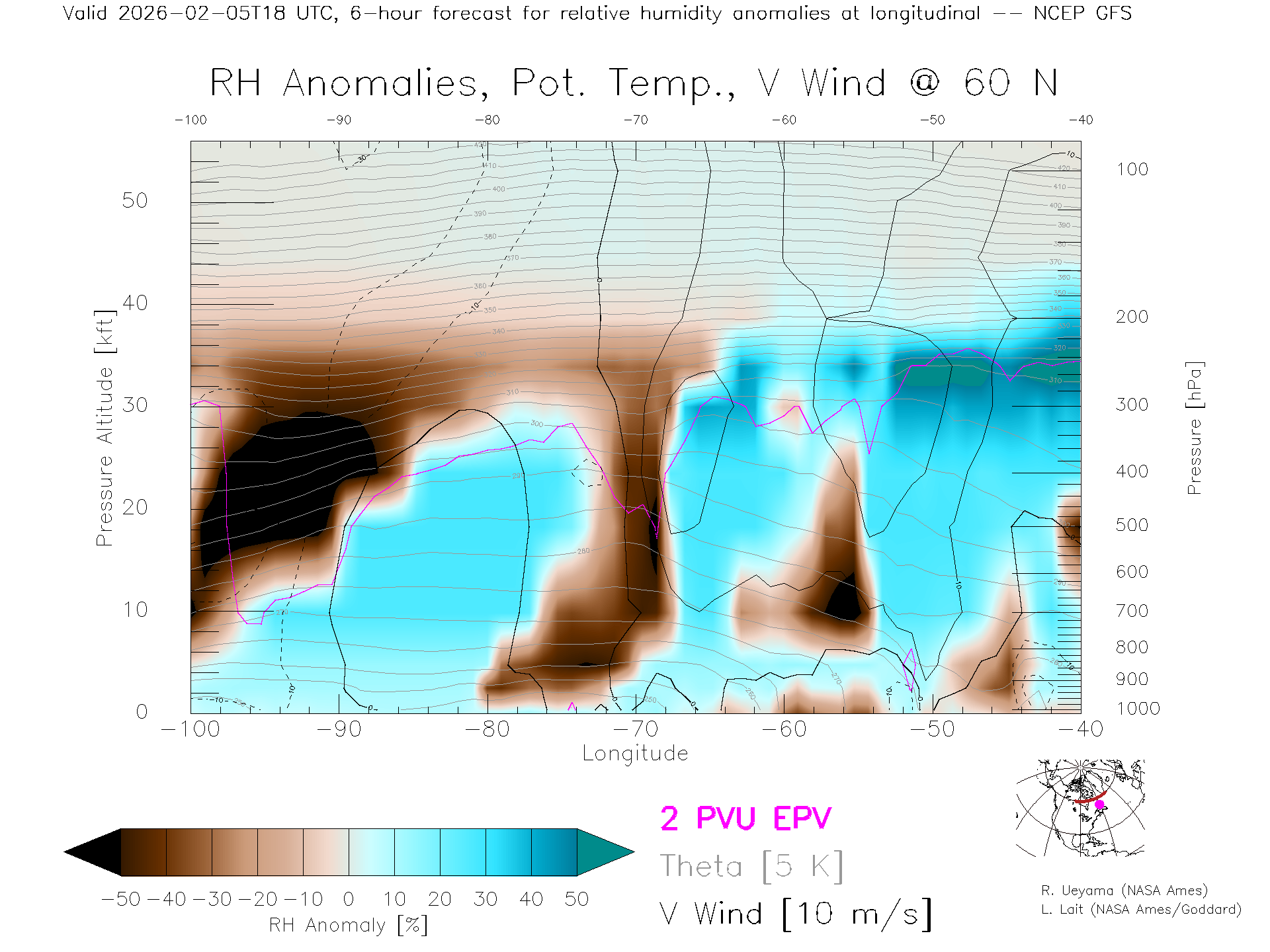 NCEP GFS Forecast Rel. Hum. X-Section (60 N)